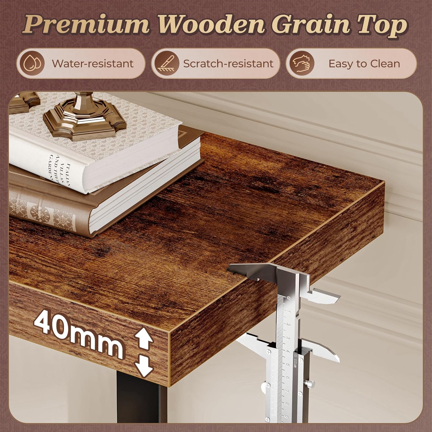 - 【Extra Thick Tabletop and Open Shelf】Crafted with 1.57" thick particleboard, the tabletop of the behind couch table offers a solid, durable surface for everyday use. The vintage wood texture adds warmth and depth to your decor, while the surface is water-resistant, scratch-resistant, and easy to clean