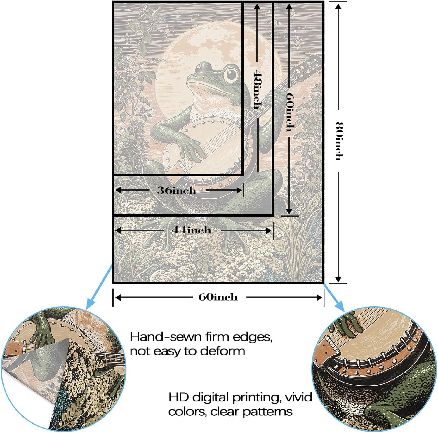 Lunerfex Moonlit Banjo Frog Wall Tapestry, Whimsical Amphibian Musician Tapestries for Room Decor, Folk Art Tapestry 44L x 60W