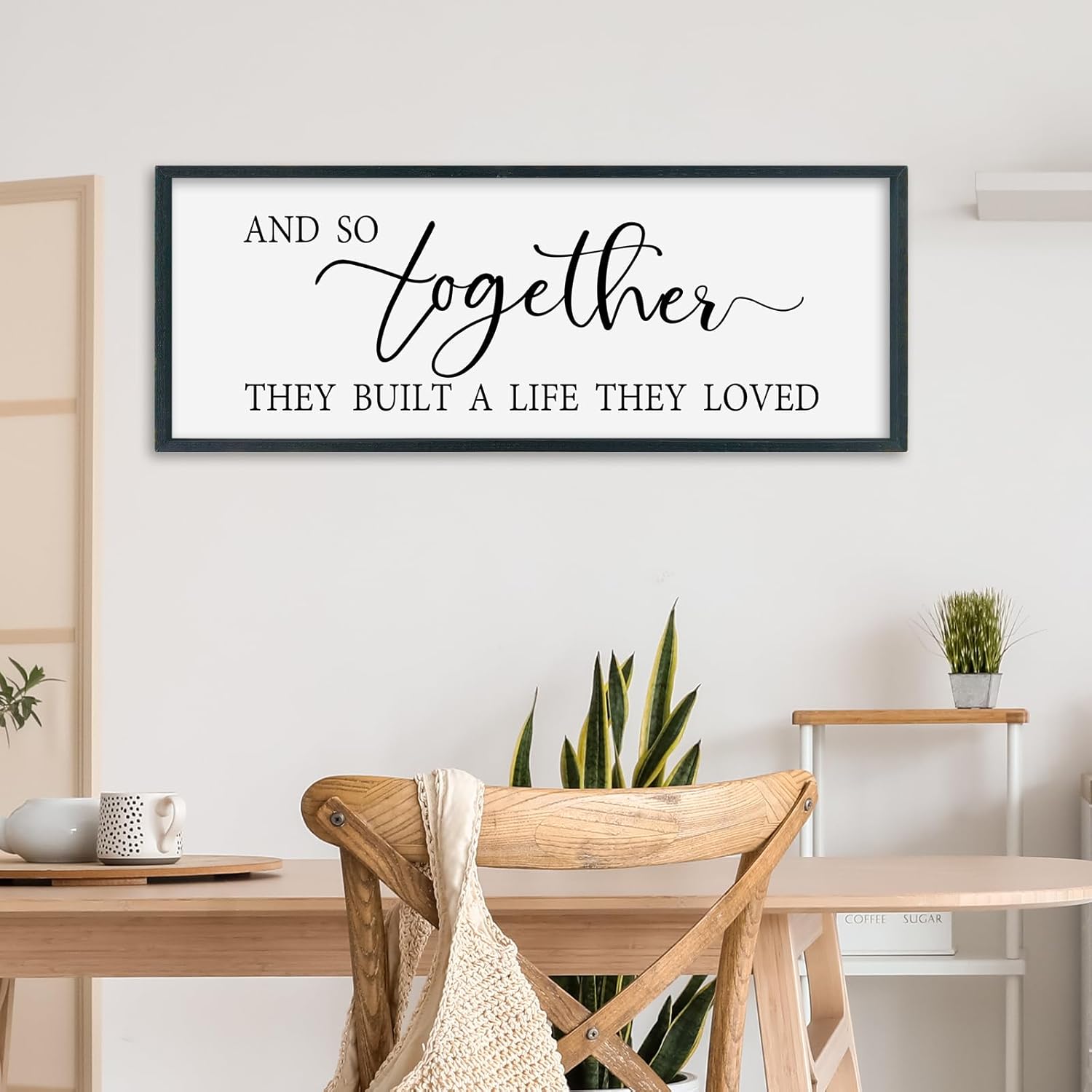 SRSZHIYUE And So Together They Built A Life They Loved Above Bed Sign Wall Decor Art 32"×12" for Master Bedroom Over Bed Large Wood Framed Wall Hanging (Black)