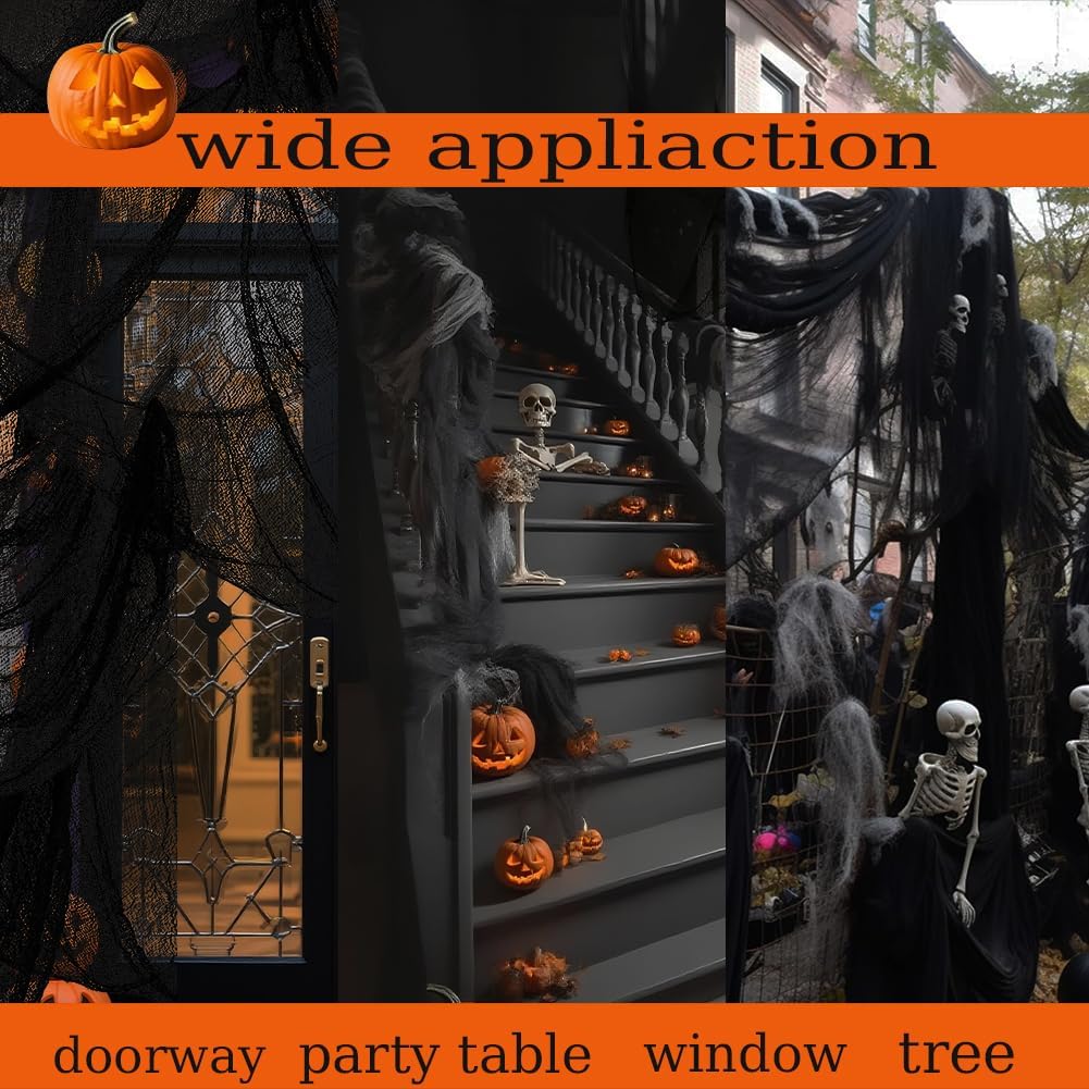 - ๐ป ENDLESS CREATIVE POSSIBILITIES Pair it with spiders, skeletons, or other Halloween propsโor cut and tear holes for a tattered ghostly effect. Trim into strips and drape from lights, trees, or furniture to create a haunting atmosphere.
