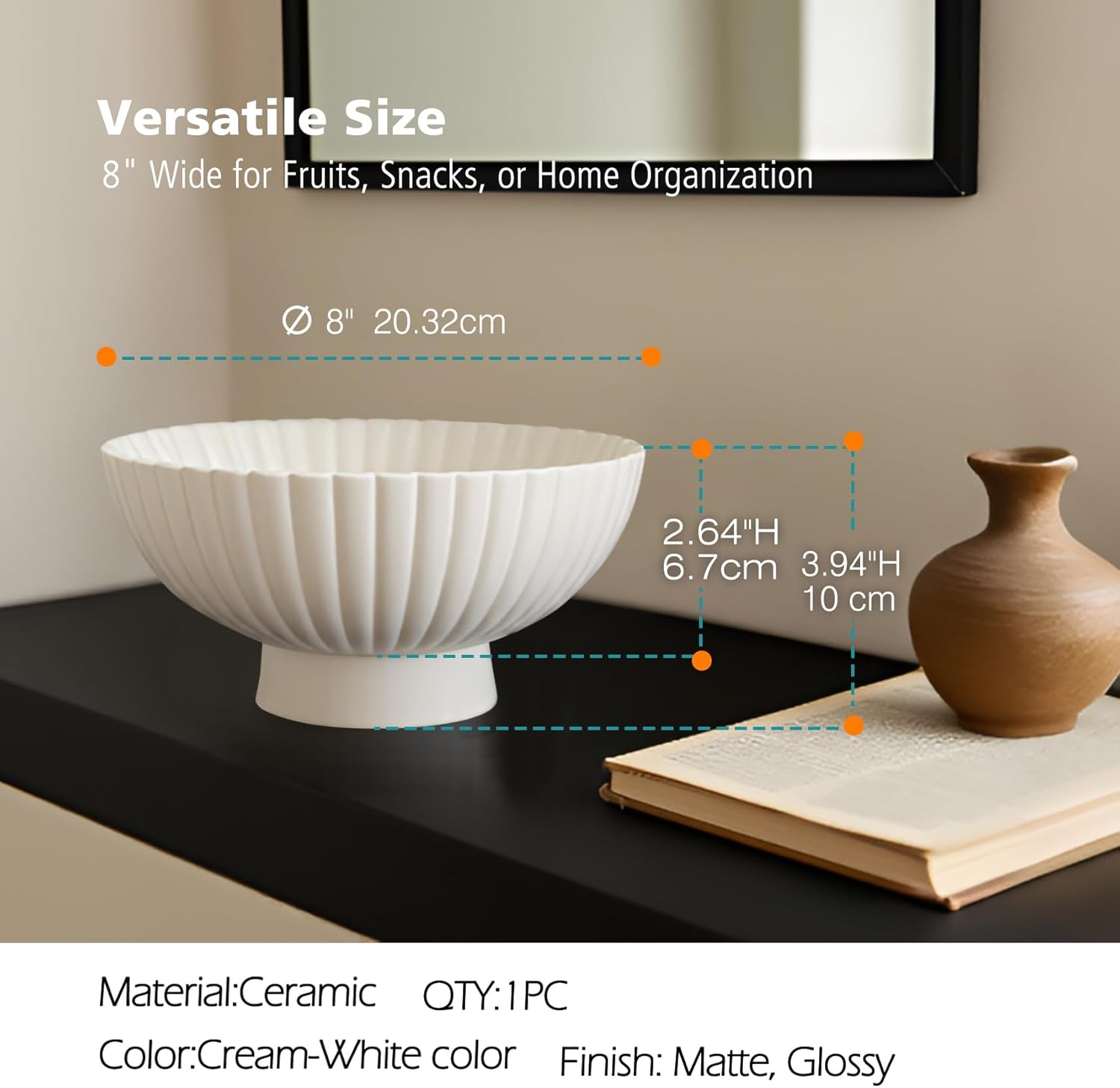- Dual-Purpose Luxury Design – Our 8-Inch White Fluted Pedestal Decorative Bowl is designed with a pedestal base,features a effortlessly enhances any space in your home. Use it as a stylish key and mail catcher by the entryway, a convenient pocket-emptying station in your bedroom, or as a charming seasonal display piece in living and dining areas. Its adaptable design complements all your decor needs.