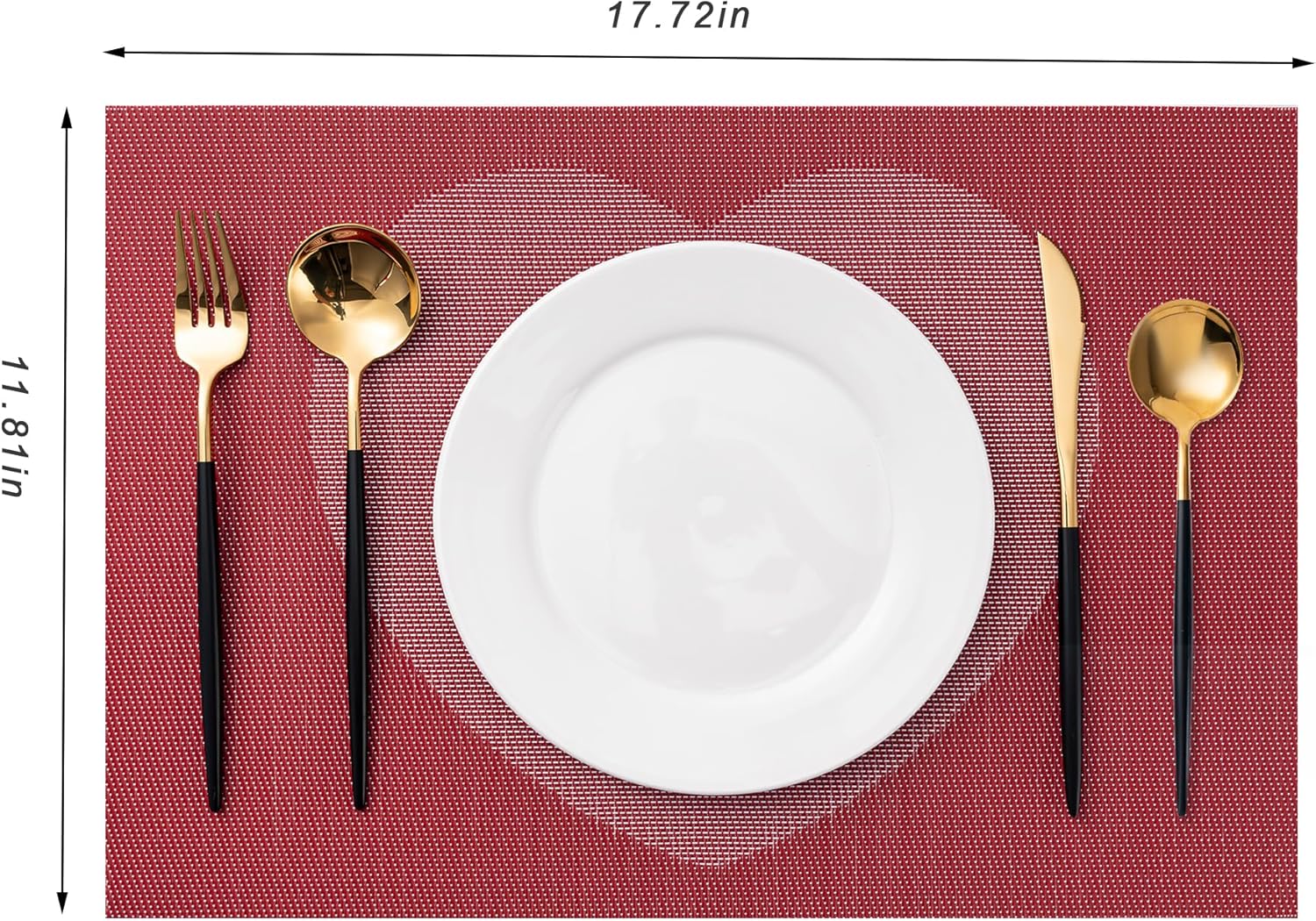 CADONO Placemats Set of 4 Washable Indoor/Outdoor Vinyl Place Mats for Dining Table Durable Non-Slip Heat Resistant PVC Weave Table Mats(Red Pink Heart)