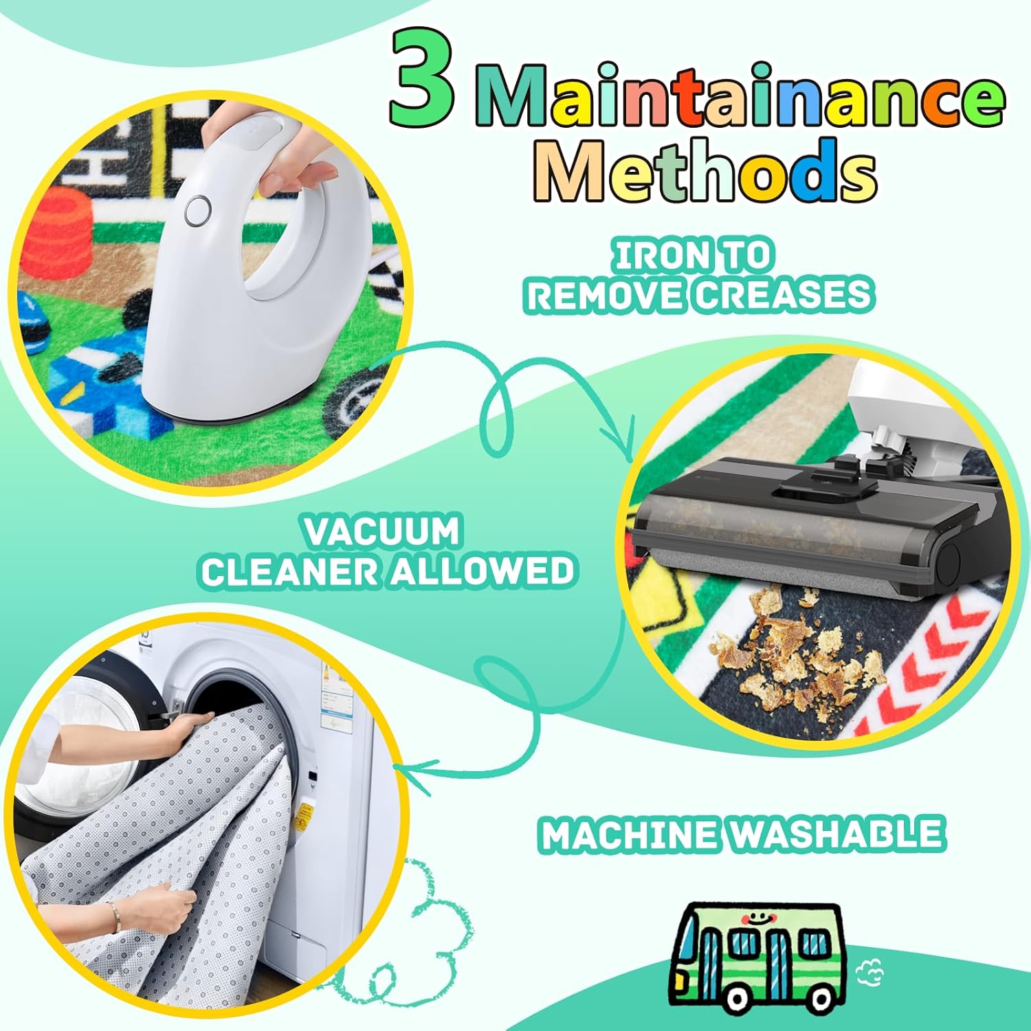 - [About Creases & Thickness]: Due to vacuum package, the road map rugs for kids may feel thinner and have wrinkles after right unpacking. Please don't worry, it will take 3 to 7 days for the kids rug to regain its original shape. You could also use a steam iron to smooth out creases caused by shipping folds