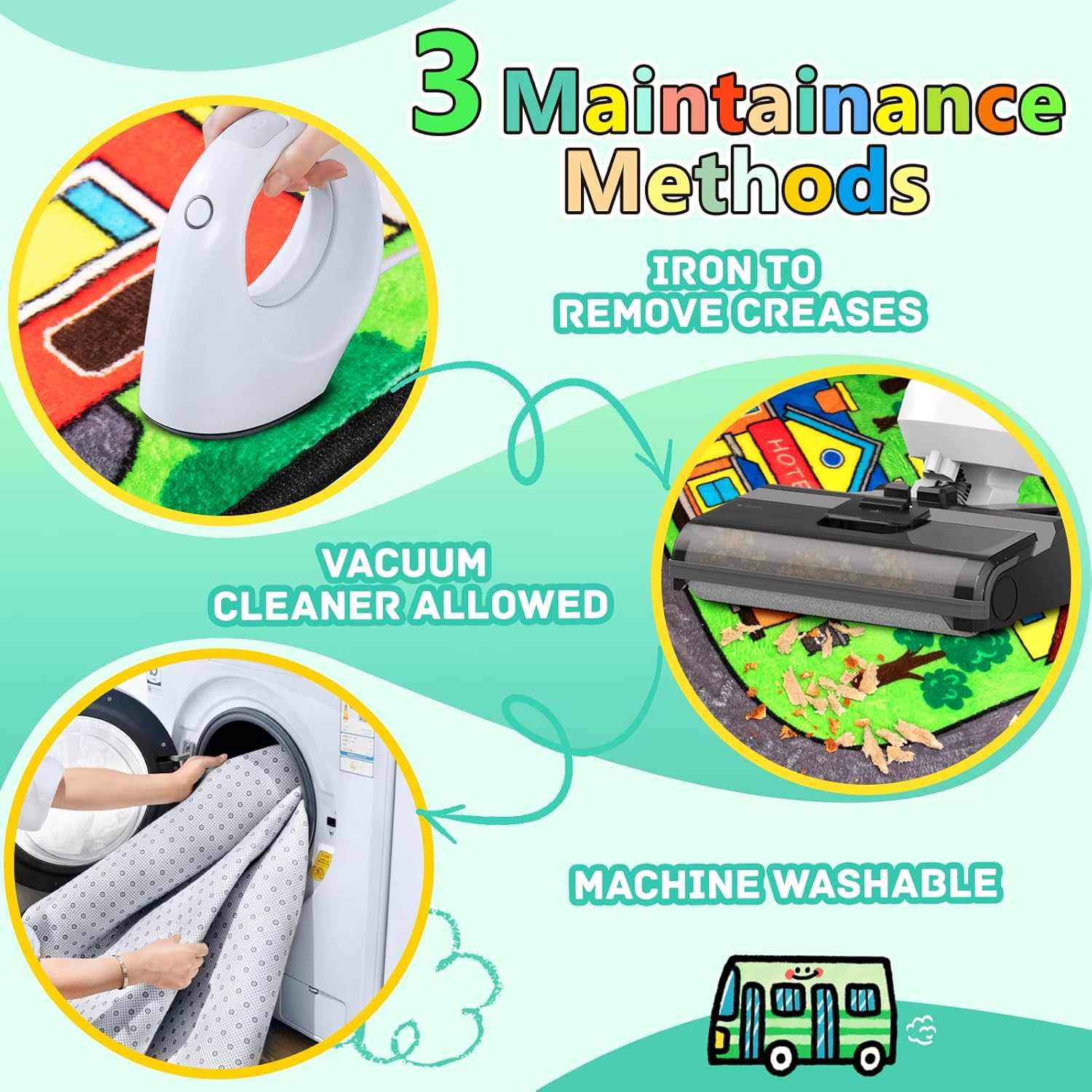 - [Machine Washable Kids Play Rug]This car rug for kids toy cars measures 6x9 feet/72*108 inches.0.4'' thick.Our mat is easy to clean by vacuum or machine.Perfect bedroom rug, living room rug, and playroom rug
