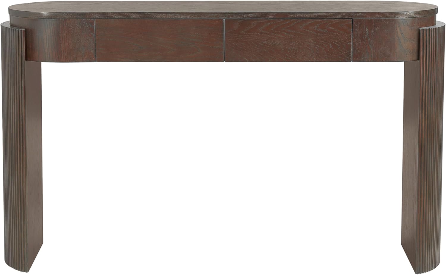 55" Sofa Table with Oval Top and 2 Drawers, Entryway Console Table with Fluted Design for Hallway,Foyer,Entry and Living Room (Fully Assembled-Espresso)