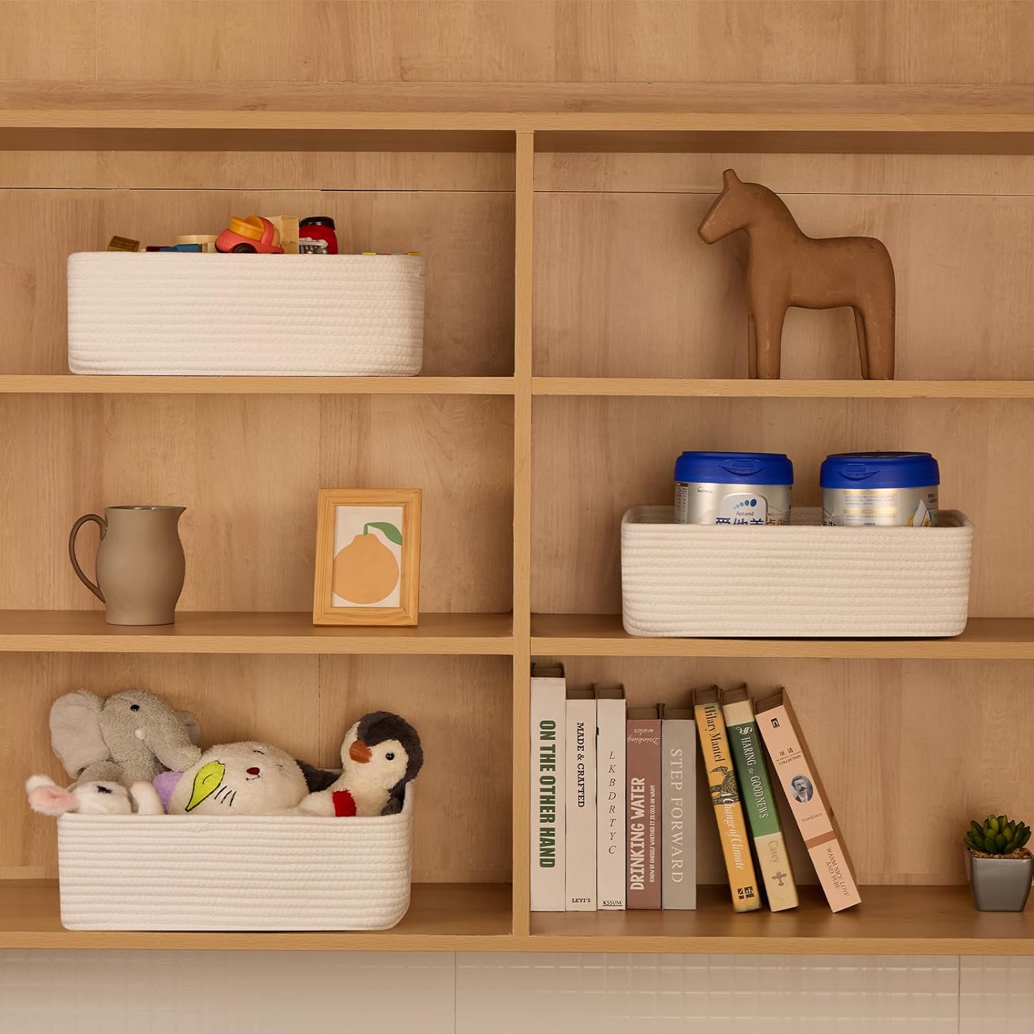- [ Stylish & Versatile ]: Great for organizing small items on desks, in closets, wardrobes, or dressers—these cute baskets add texture to any living room, bedroom, or bathroom, appealing to fans of modern minimalist design