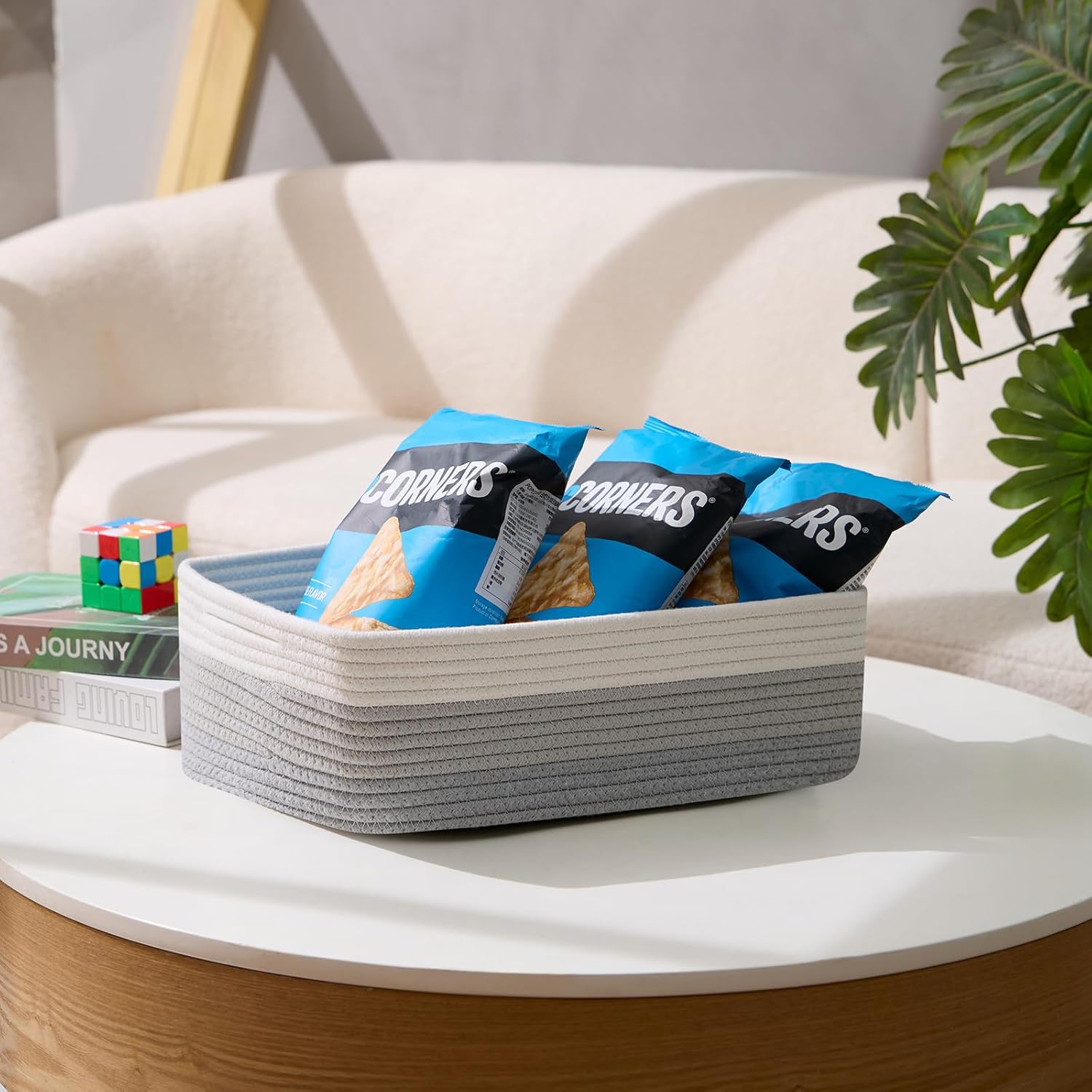 Large Shallow Organizing Baskets 15x11x5.1 Inches - Rope Woven Storage Bins for Bathroom, Shelves, Cube Closet, Gradient Grey 2 Packs