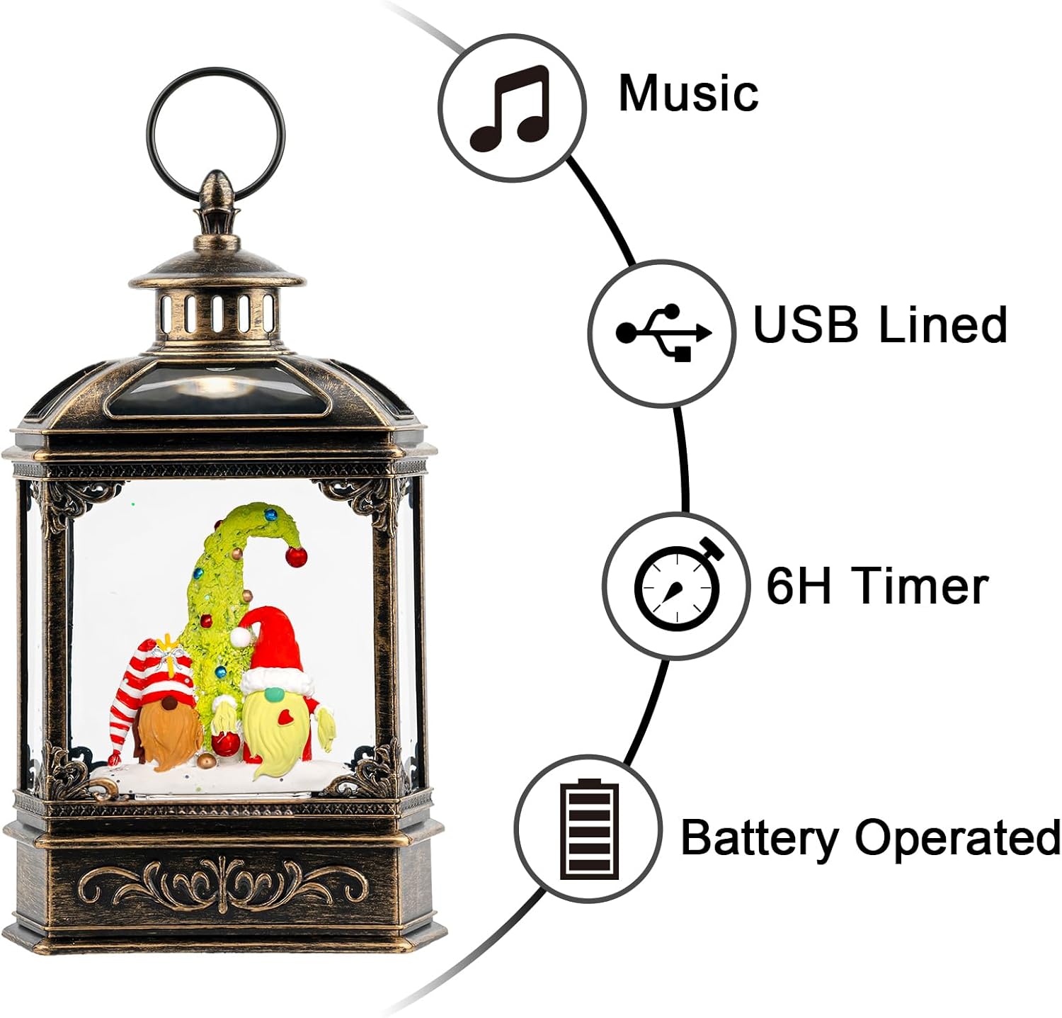 Christmas Snow Globe Lantern Water Glittering Gnomes Scandinavian Santa Elf with Music, USB Lined/Battery Operated Lighted Lantern for Christmas Festival Decoration Gifts
