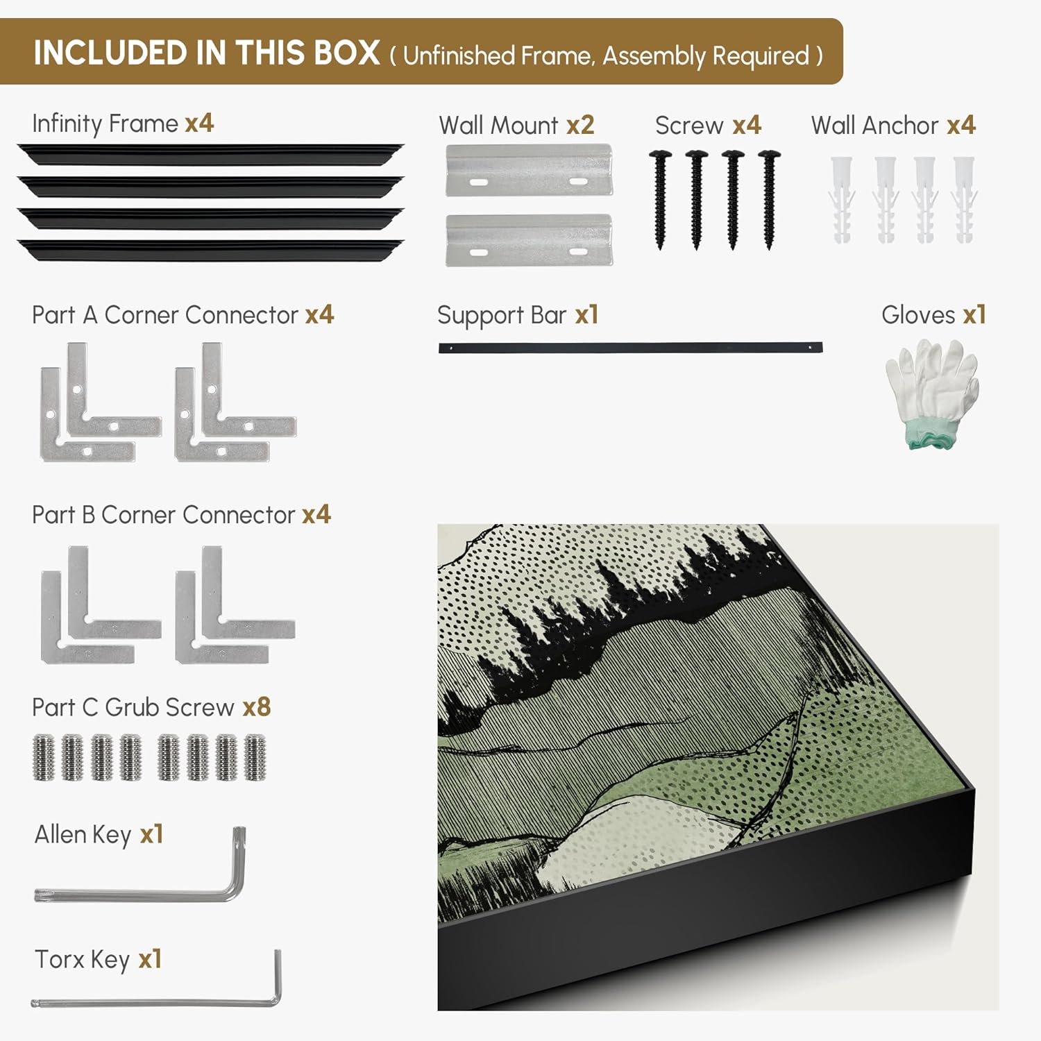 - Assembly Required: The artwork comes with the frame components unassembled. Don¡¯t worry - setup is straightforward and tool-friendly. For best results and accurate alignment, we recommend two people to ensure a smooth assembly and a stable, secure wall mount.