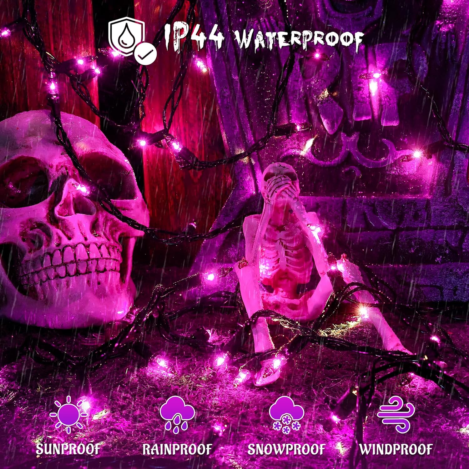 - 【Versatile Indoor and Outdoor Decor】: Featuring an IP44 waterproof rating, these purple fairy lights are perfect for wrapping around trees or enhancing the ambiance of your bedroom, living room, fireplace, garden, patio, balcony, fences, or wreaths. They are ideal for holiday decorations, birthdays, festivals, haunted houses, and Halloween parties.