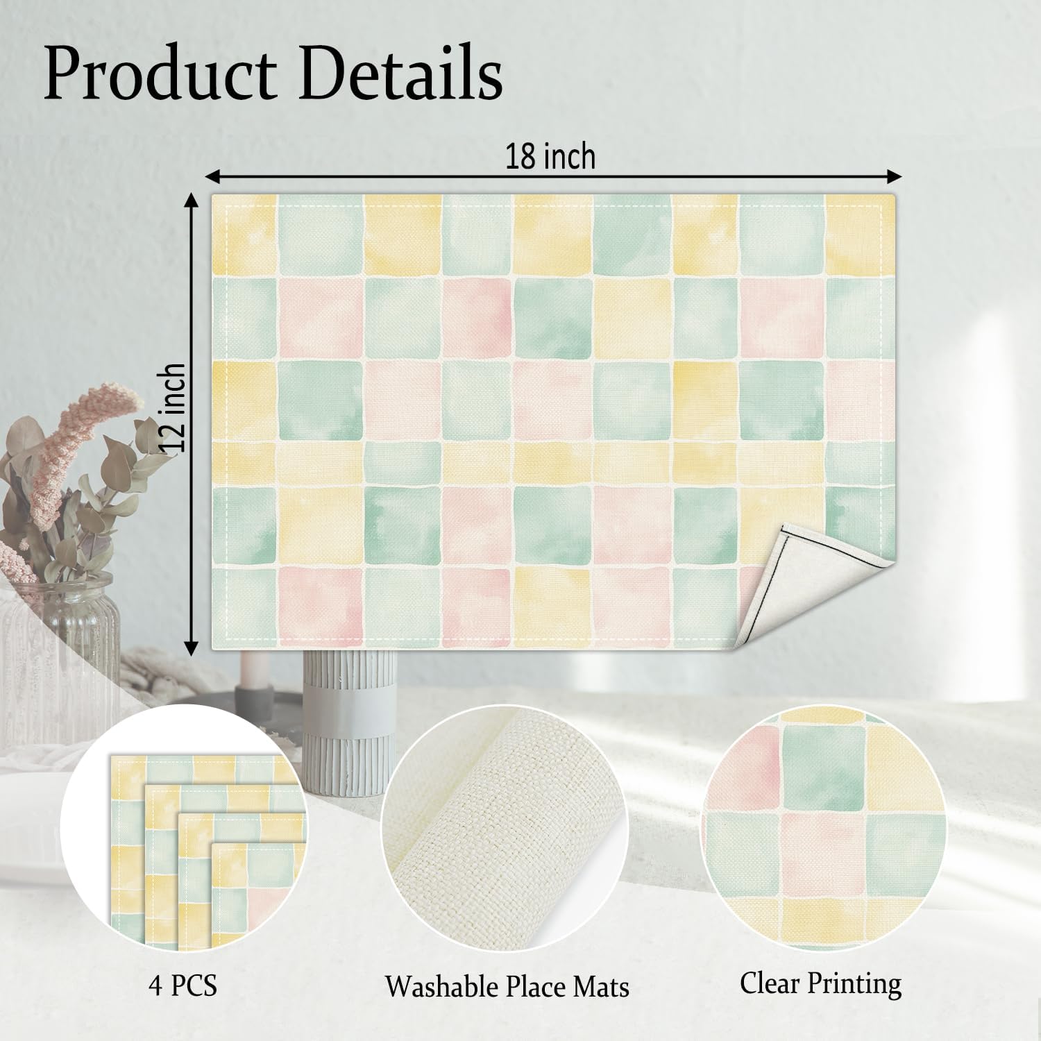 Watercolor Placemats Set of 4, Colorful Table Mat for Home Kitchen, Restaurants, Outdoor Linen Washable Place Mats 12x18 inch Party Event Dining Decoration-12