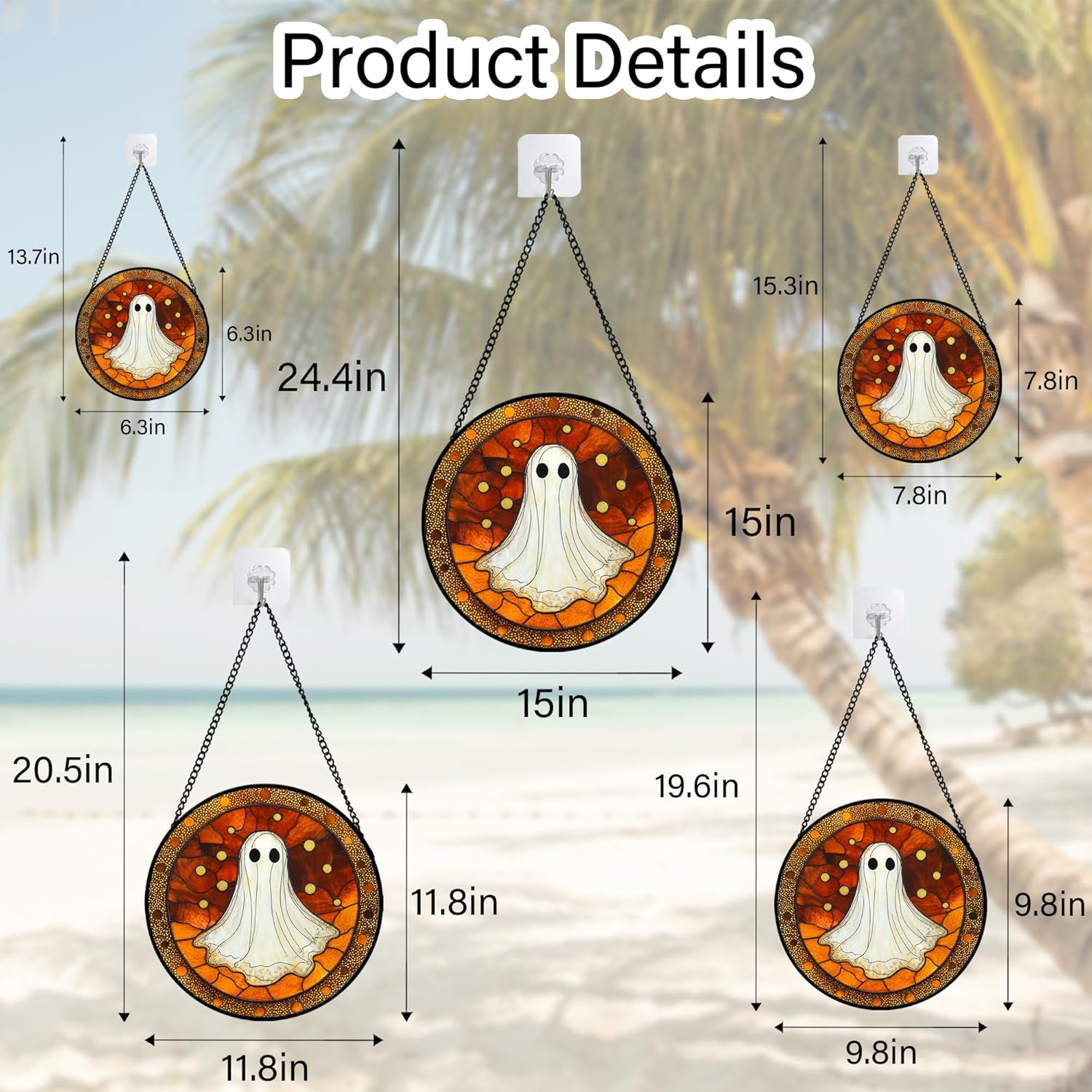 Stained Glass Window Hanging - Halloween Decorations White Ghost Suncatcher for Doors Garden Indoor Spooky Funny Orange Sun Catchers Gothic Decor Horror Gifts for Women Men Friend 6.3 in