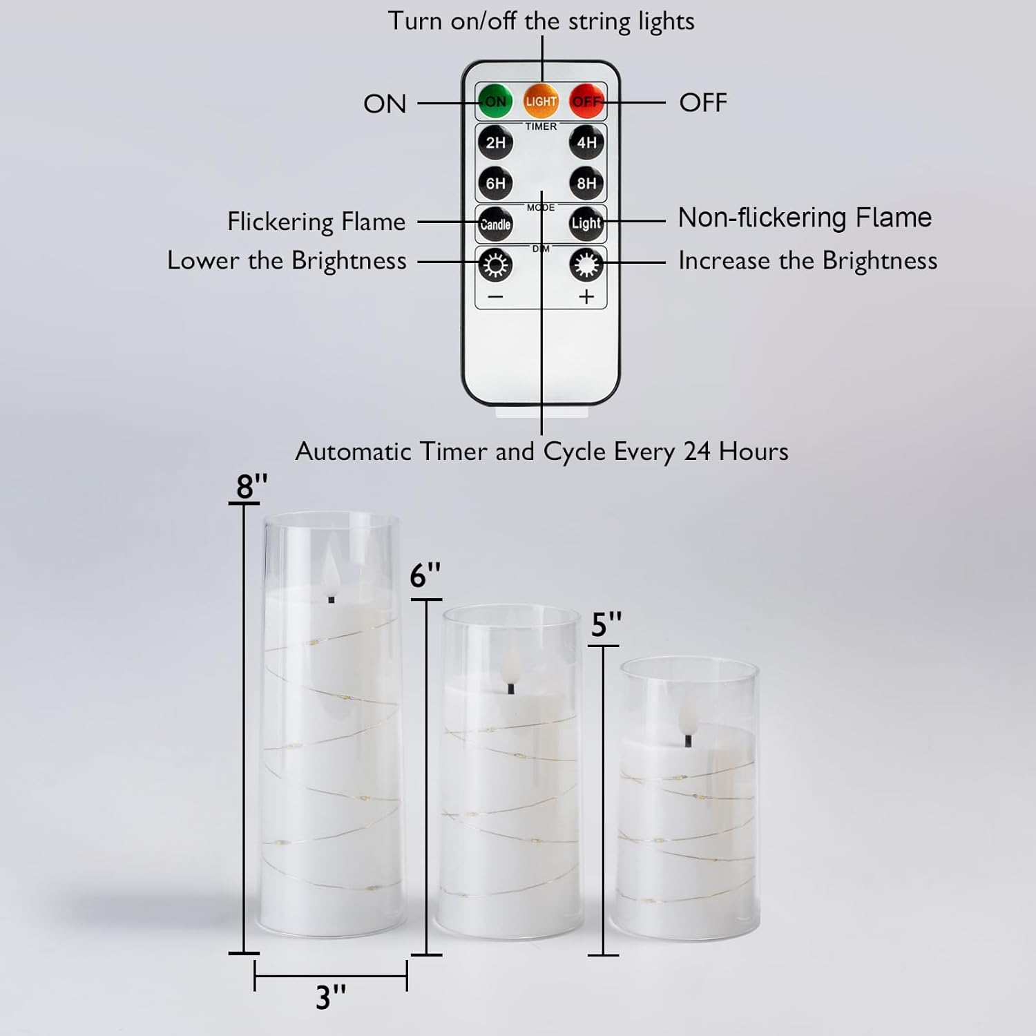 Homemory 9 Pcs Flameless Candles with Embedded Star String Fairy Lights, Battery Operated Candles, LED Candle, Fake Candles with Remote Control and Timer (Ivory)
