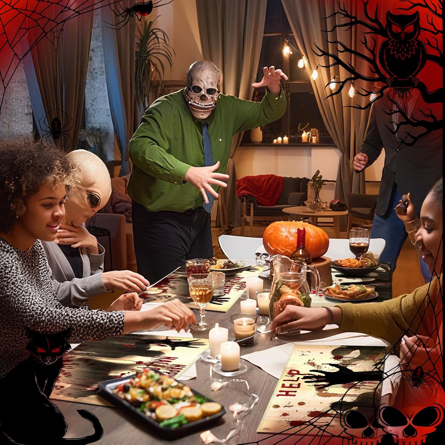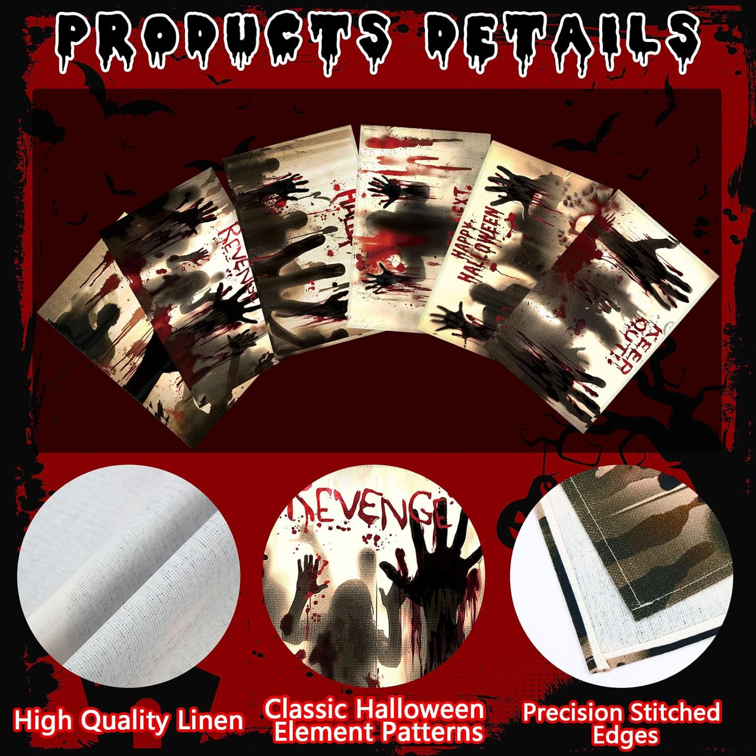 Umigy 6 Pcs Halloween Placemats 12"x18" Gothic Bat Placemats Kitchen Decoration Washable Witch Place Mats Rectangle Skull Table Mats for Halloween Dining Table Accessories (Bloody Hands Style)