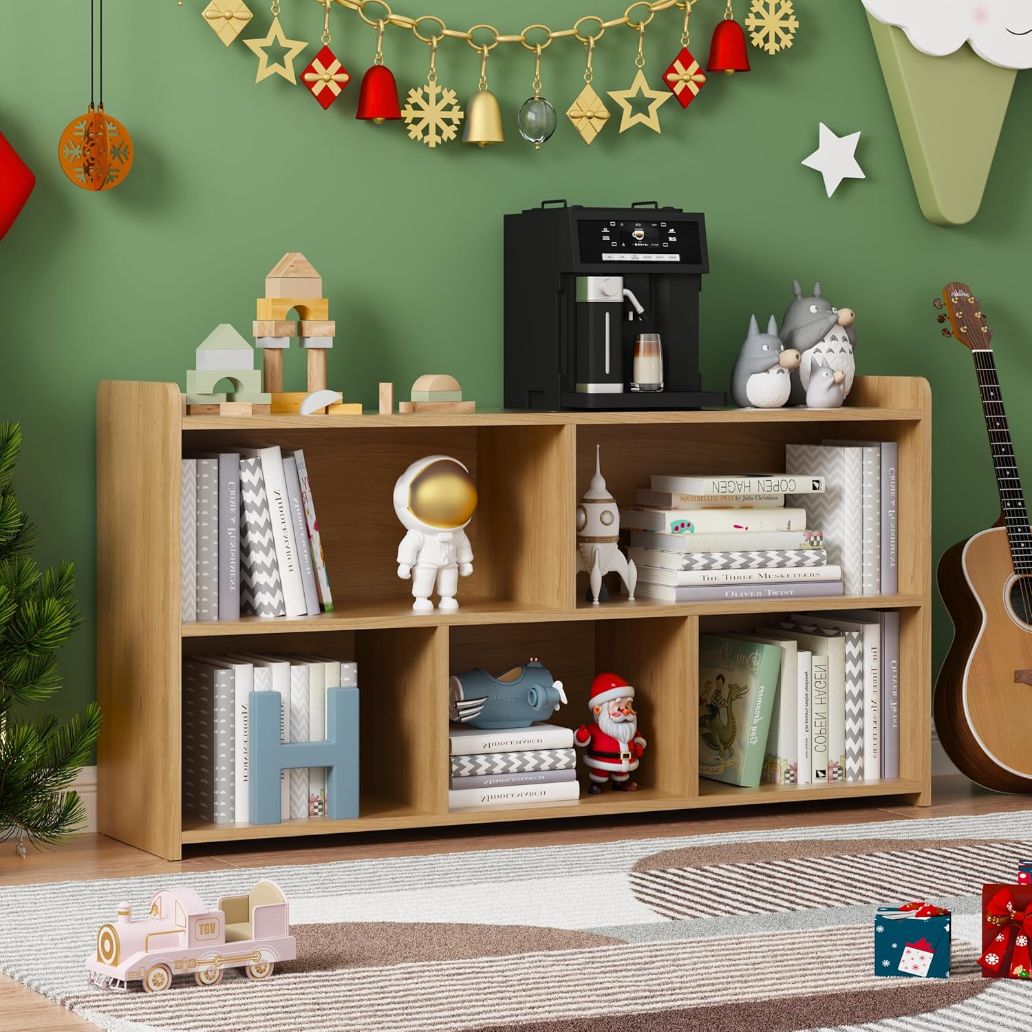 Book Shelf Set of 2, 5 Cubes Storage Organizer, Open Shelf Wooden Bookcase, Freestanding Log Bookshelf Cube Shelf for Bedroom, Living Room, Home Office