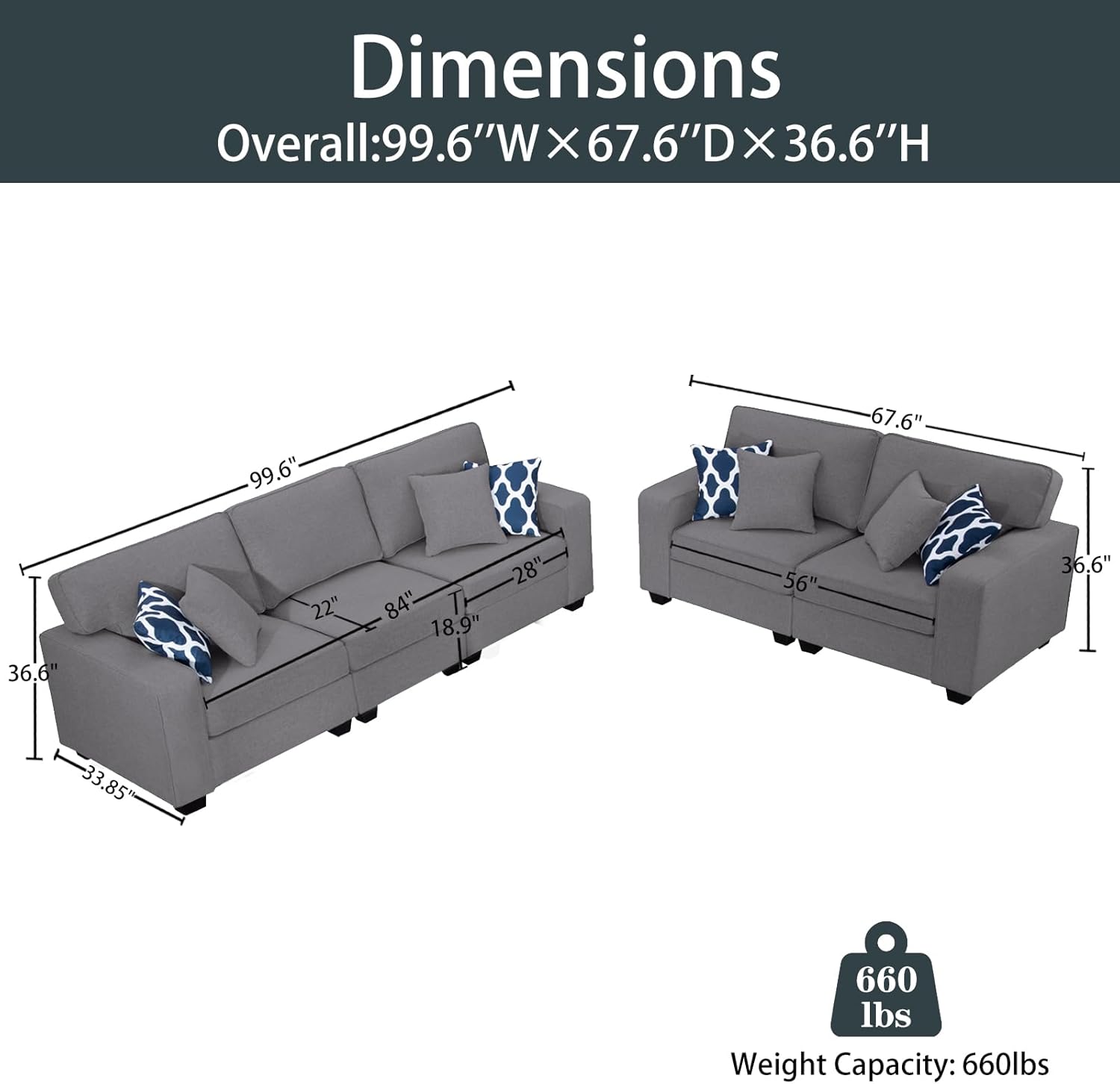 - 【Ergonomic Design】The backrest of the couches for living room perfectly fits the human body curve, the armrests are wide and at the right height, and the living room sofa as a whole is ergonomically designed to give you comfortable support. The modular sectional sofa is paired with multiple multi-functional small pillows, allowing you to relax anytime, anywhere. The oversized couch has a weight capacity of up to 660 pounds to give you stable support.