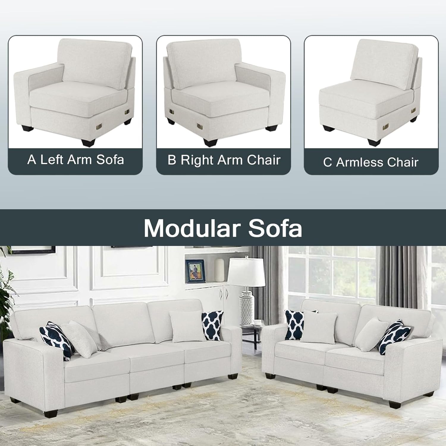 L Lengend Vansen Modular Sectional Sofa U Shaped Couch with Ottoman Modern Reversible Corner Sectional Couch for Living Room (Cream, 2+3)