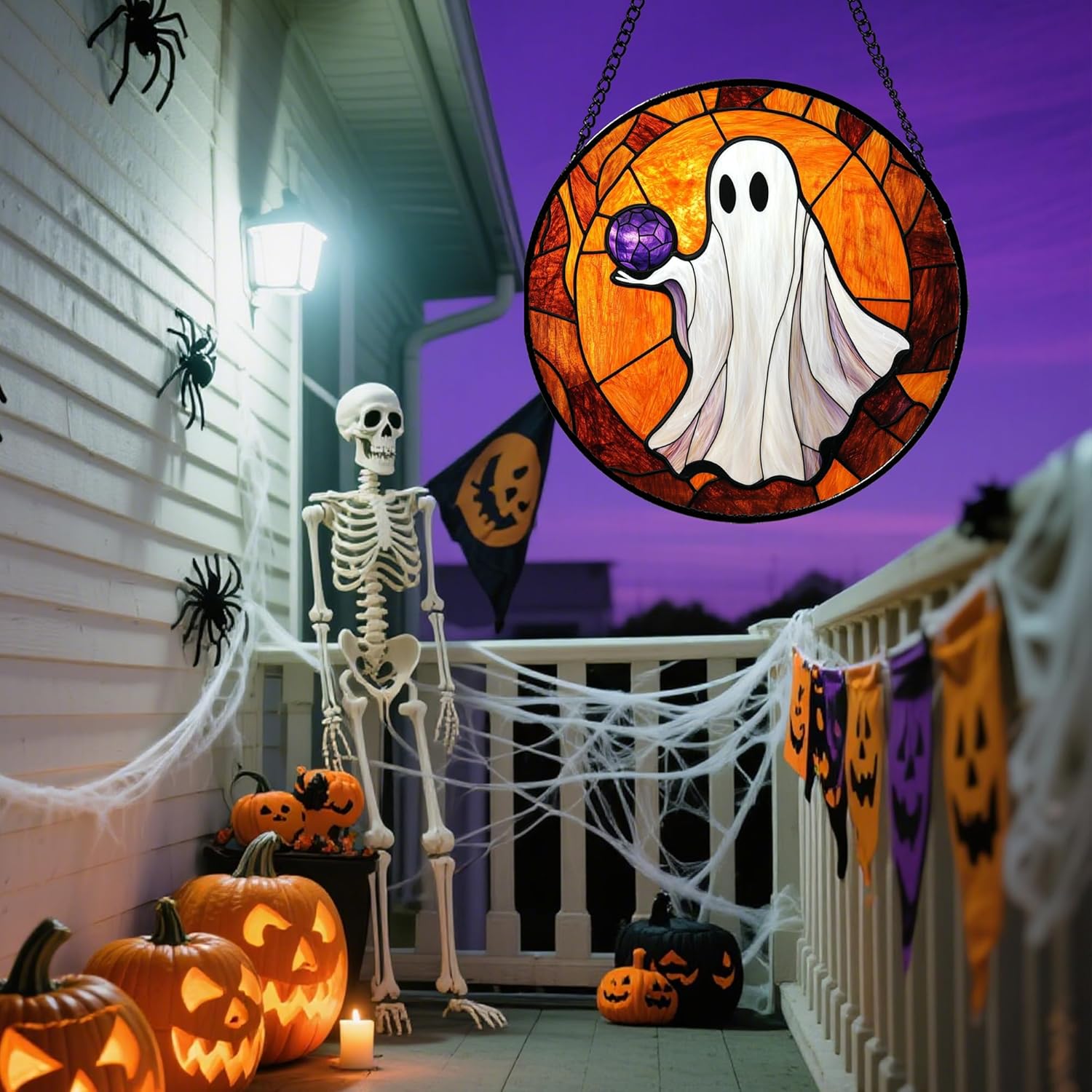 - Easy to Hang & Display: Comes with a sturdy hanging chain. You can effortlessly hang it on any window, door, or wall. No complex installation needed, allowing you to quickly decorate your home for Halloween parties or daily festive vibes.