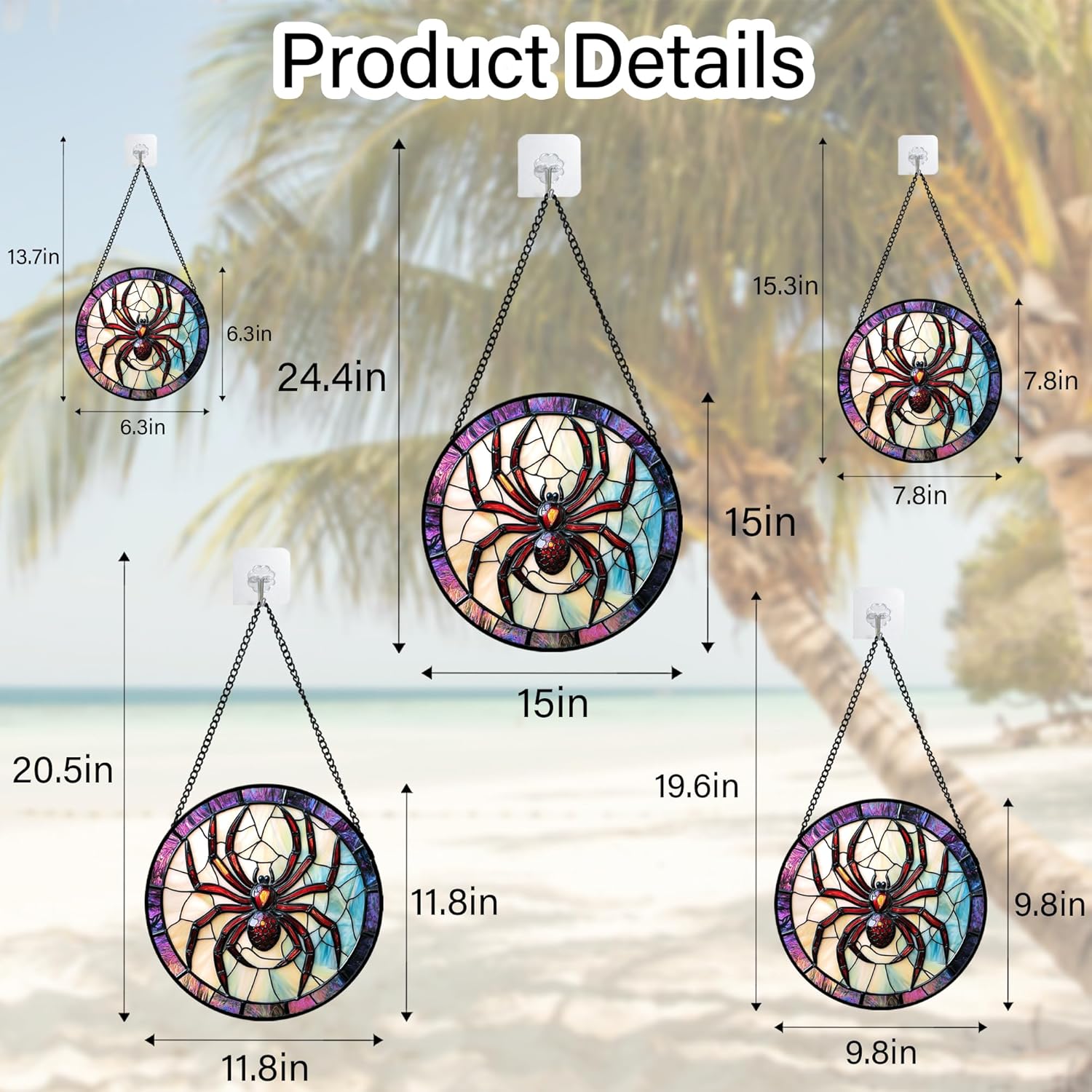 Stained Glass Window Hanging - Halloween Decorations Red Spider Goth Suncatcher for Doors Garden Indoor Funny Spooky Sun Catchers Gothic Decor Horror Gifts for Women Men Friend 7.8 in
