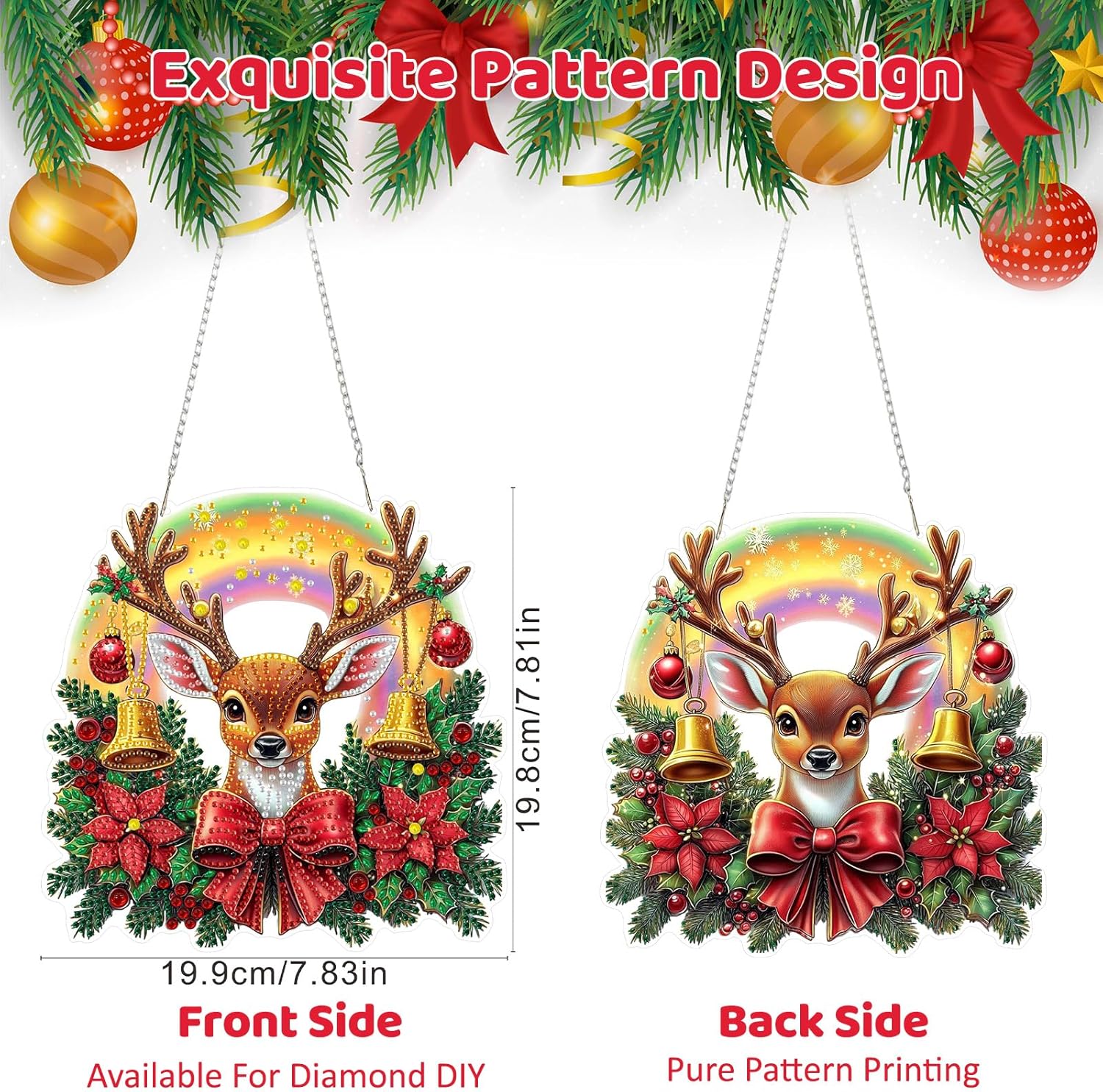 MEIYUDA Christmas Hanging Diamond Art Kits for Adult, Deer Diamond Painting Hanging Kits Ornaments, DIY Special Shaped Rhinestone Window Pendants kit for Home Garden Wall Decor Gift