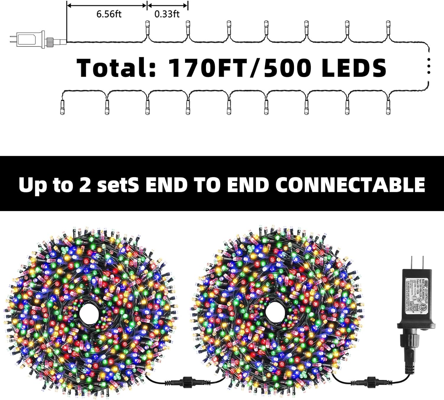 - 170FT/500LED & End to End Expandable:This super long 170FT fairy string lights with 500LED warm white individual bulbs. And each Christmas light has end-to-end connection that allows up to 2 strands connected together to illuminate a wider range. They will brighten up the dark corner for happiness atmosphere inside or outside.