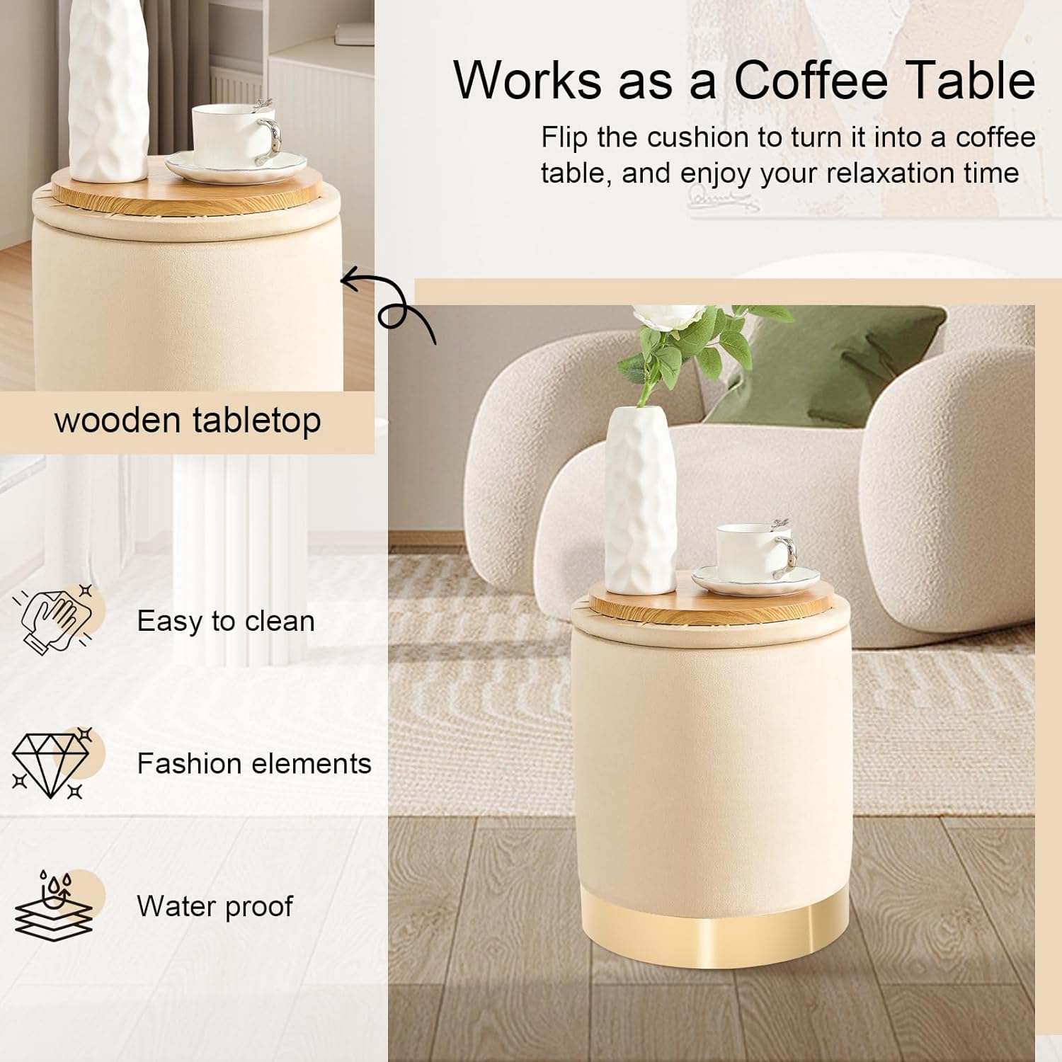 - Unique Apperance: Our round storage ottoman has a sophisticated look, with handcrafted lines on both sides to enhance its elegant design, making it a decorative piece that enhances the beauty of your room wherever it is placed.