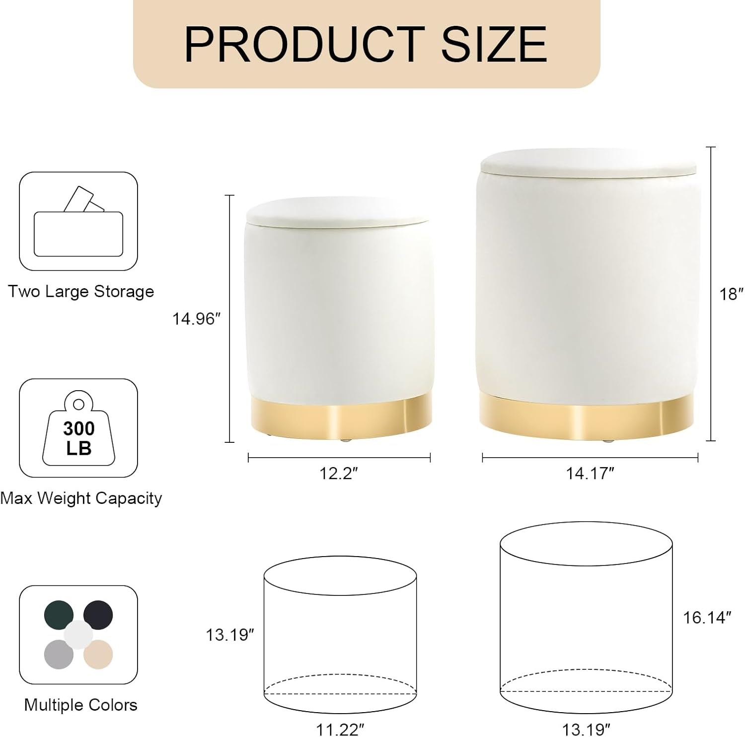 - No Assembly:Our round storage foot stool requires no assembly. The footstool is very stable and can hold up to 300 pounds. The bottom is equipped with foot pads to protect the floor and prevent sliding.