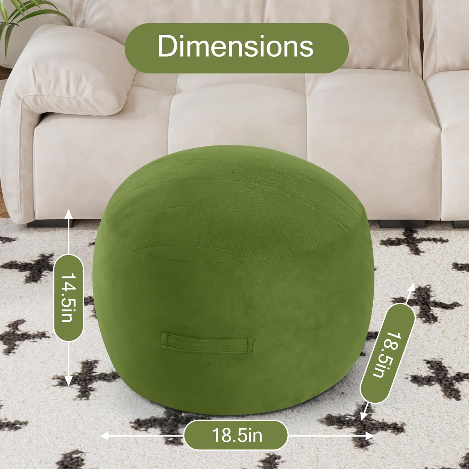 MeMoreCool Round Stuffed Pouf Ottoman Foot Rest, Floor Pouf Foot Stool with Soft Foam Chunk Filling, Small Round Ottoman Footstool Circle Footrest for Living Room, Green