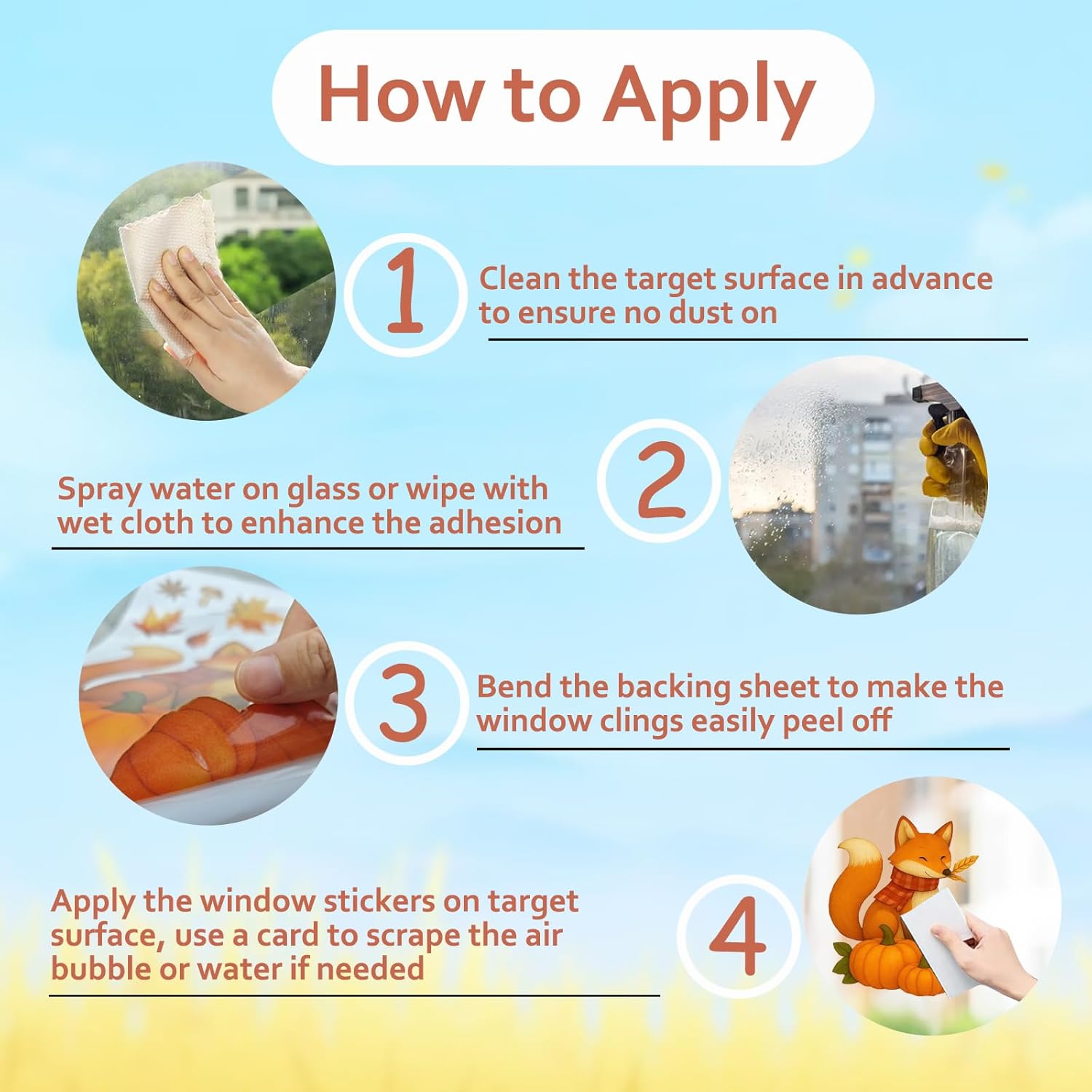 - ๐ฅณWonderful Seasonal Decors: With the abundant fall window stickers, brings warm and cozy atmosphere to family/friends/employee/students when the fall is coming. Amazing party decor for thanksgiving, harvest celebrating, birthday, baby shower bridal shower, etc.