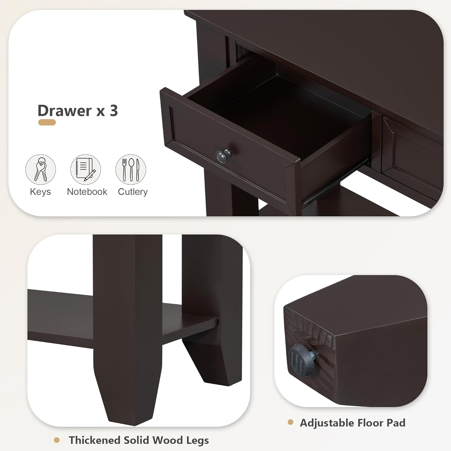 Farmhouse Modern Console Table 55.4-Inch Entryway Sofa Table with Drawers & Storage Shelf for Living Room Hallway Entrance, Dark Coffee