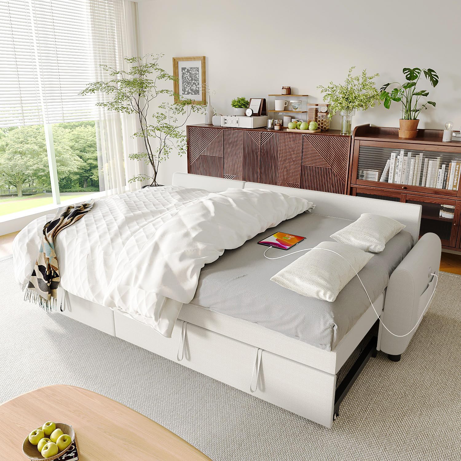 Ucloveria Sleeper Sofa Bed, 86" Convertible Sectional Sofa Couches for Living Room, 4 in 1 Pull Out Couch Bed with Reversible Storage Chaise | USB Ports | Side Pockets | Removable Backrest