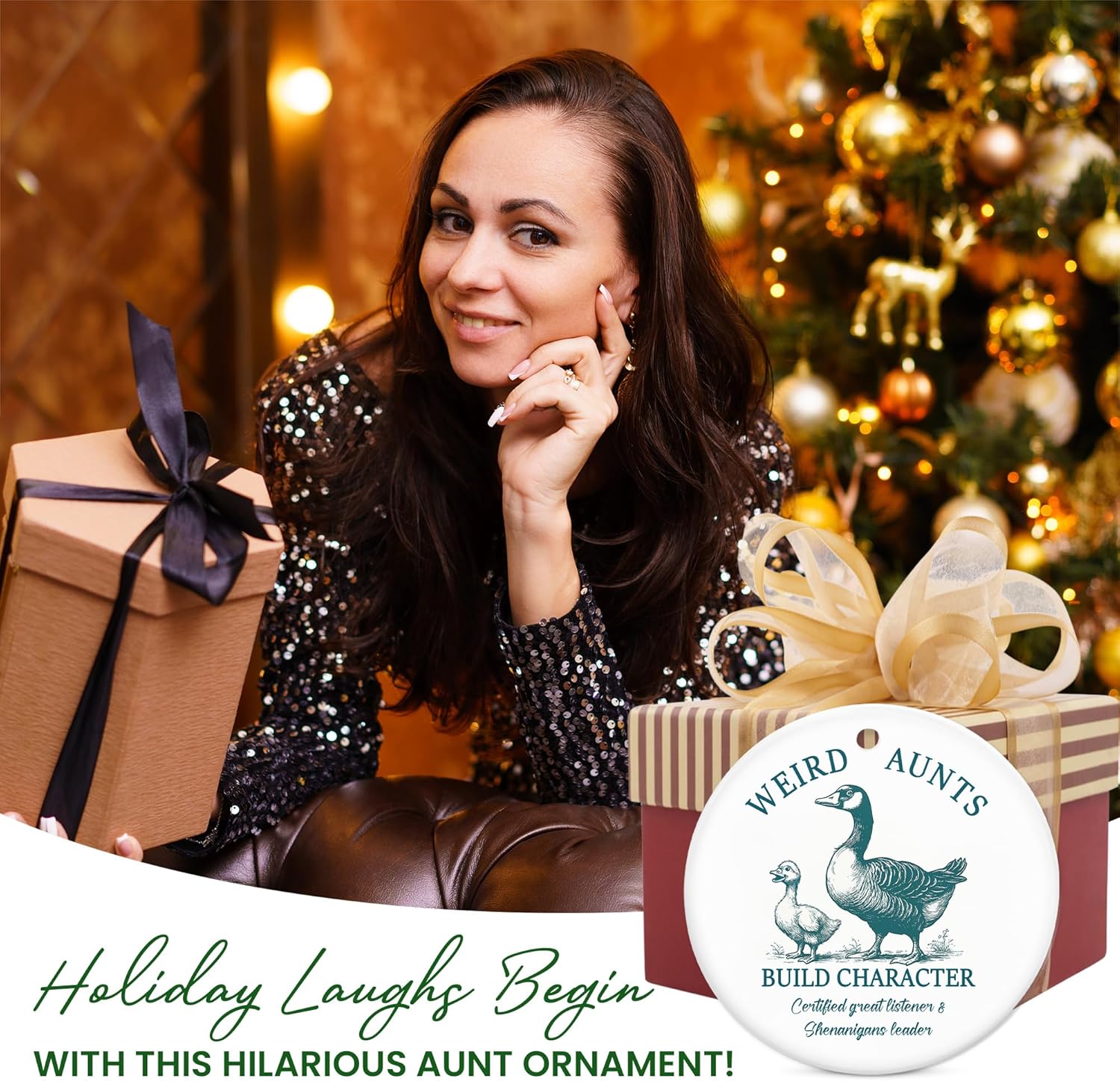 - EASY TO DISPLAY & SHARE – Designed with a festive ribbon for quick hanging, these Christmas gift ideas shine on trees, wreaths, and mantels. A must for funny aunts gift ideas, it works as aunt gifts for Christmas, auntie Christmas gifts, and Christmas gift for aunt from niece, keeping Weird Aunt energy alive in every holiday memory.