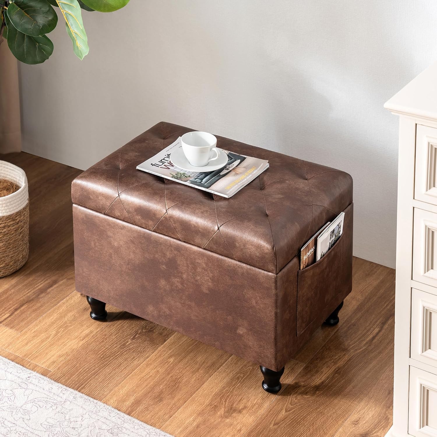 Leather Storage Ottoman Bench Rectangle 24 Inch Foot Rest Ottomans Stool for Living Room Bedroom(Brown)