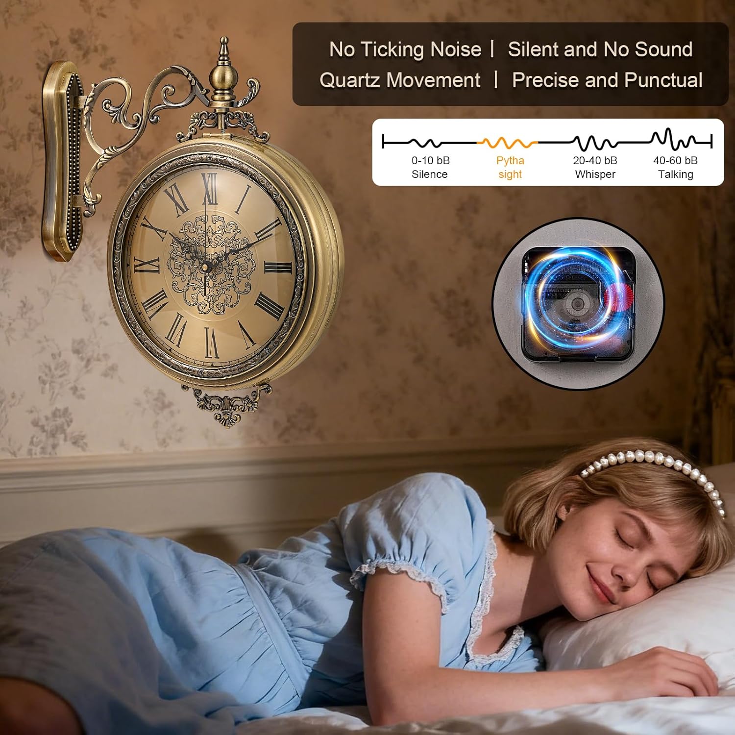 - 🎯 [Double-Sided Vintage Design with Roman & Arabic Numerals] Admire classic elegance from any viewpoint. Our unique double sided wall clock displays sophisticated Roman numerals on one side and clear Arabic numerals on the other. This antique stationary design offers dual visibility in a stunning vintage package, making it a captivating hanging clock for your space.