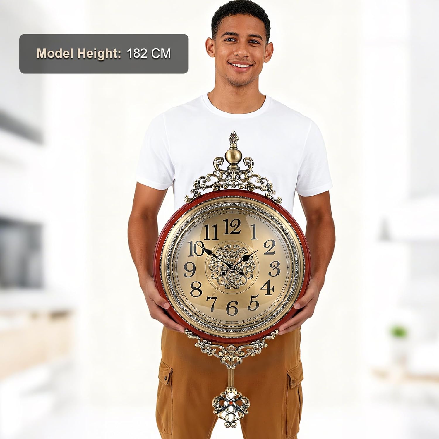 - ๐ [Large, Easy-to-Read & Statement Size] Designed for both style and function. The large 16-inch dial features bold Arabic numerals, making it easy to tell the time from anywhere in the room. Its substantial size (31.5" H x 16" W) makes it a perfect wall clocks for living room, creating a stunning focal point.