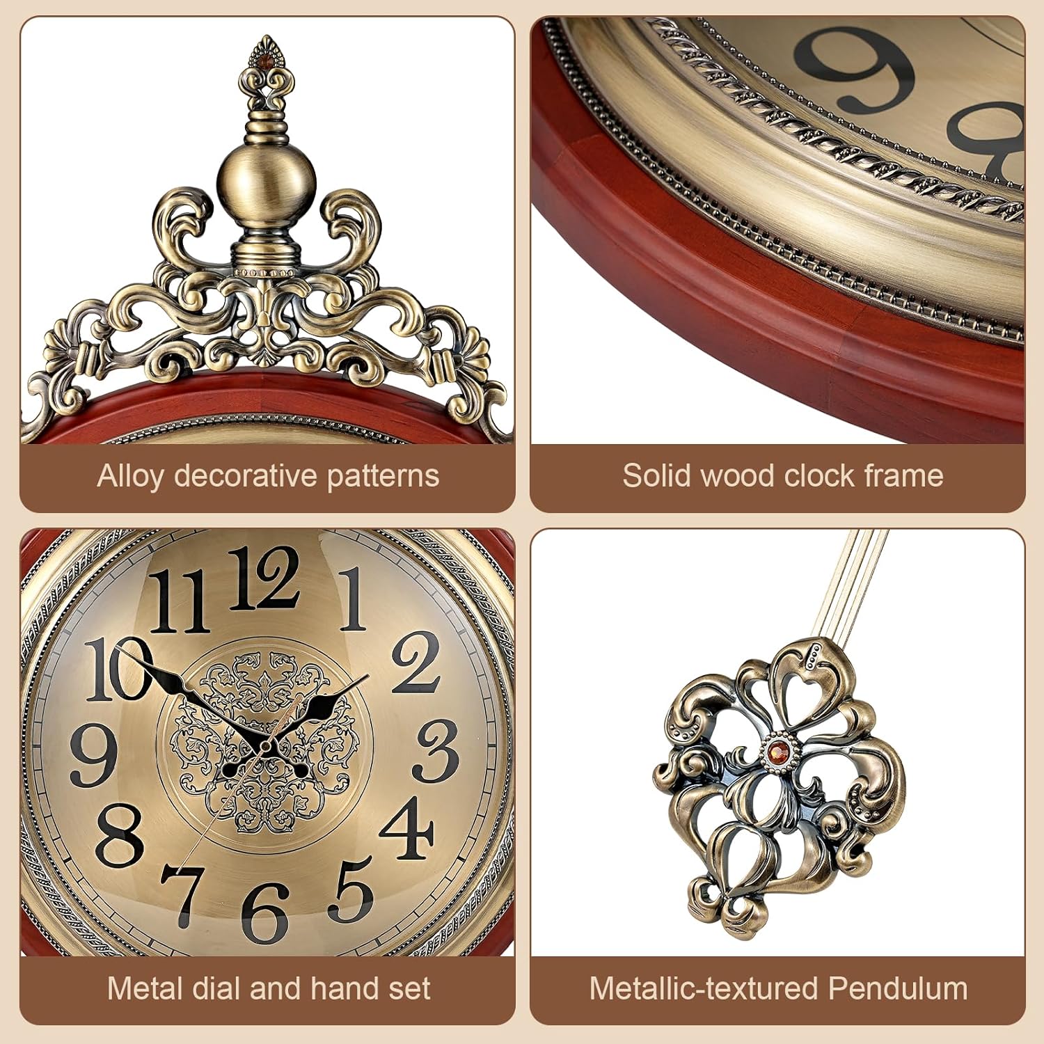 - ๐ [Elegant Victorian Home Decor] Transform your space with this exquisite Victorian wall decor piece. Crafted with ornate antique gold finishes, a solid wood circle, and glass, this decorative wall clock replicates classic craftsmanship, adding a touch of timeless elegance and sophistication to your living room, dining room, or office.