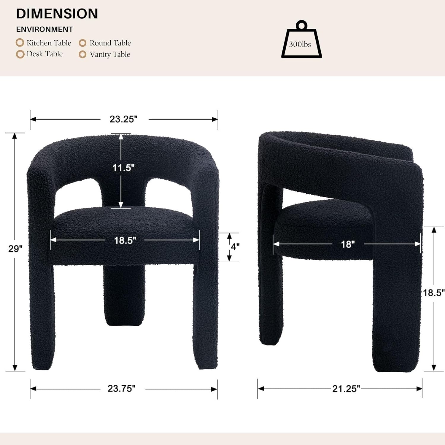 - FLUFFY BOUCLE COVERED: This dining chair features a soft, fuzzy faux fur upholstery that fully covers the seat cushion, offering a luxurious and cozy feel with every sit. The plush material adds both comfort and style, making it an inviting addition to any dining or living space