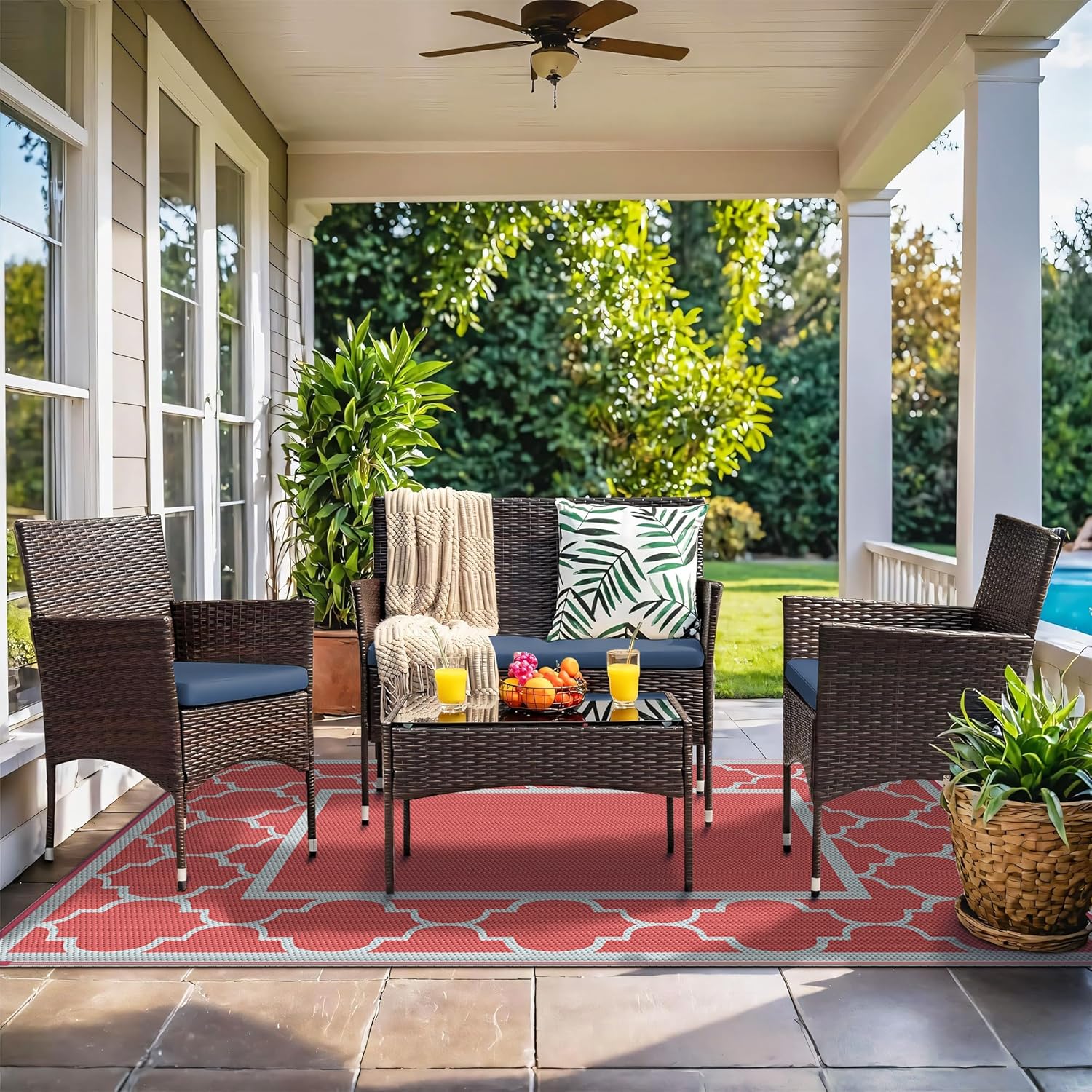 - Versatile Settings:Upgraded polypropylene ensures breathability and fast drying in this outdoor rug waterproof design. Perfect for the patio, deck, backyard, garden, porch, beach, RV, picnic, or camping. Elevate your outdoor experience with GENIMO—whether you're furnishing a peaceful retreat with pamapic outdoor furniture or outfitting your weekend getaway with stylish rv essentials