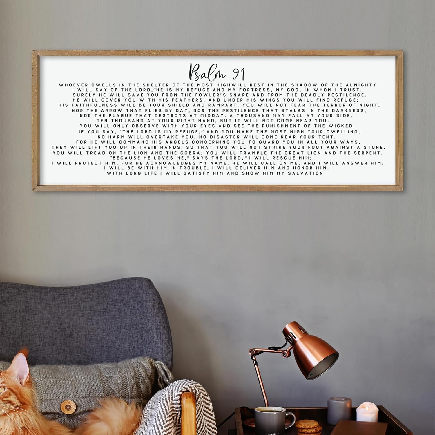 LuZhiQiang Psalm 91 Wall Decor Art 40"×15" Bible Verse Sign for Family Bedroom Christian Large Wood Framed Wall Hanging (Wood)