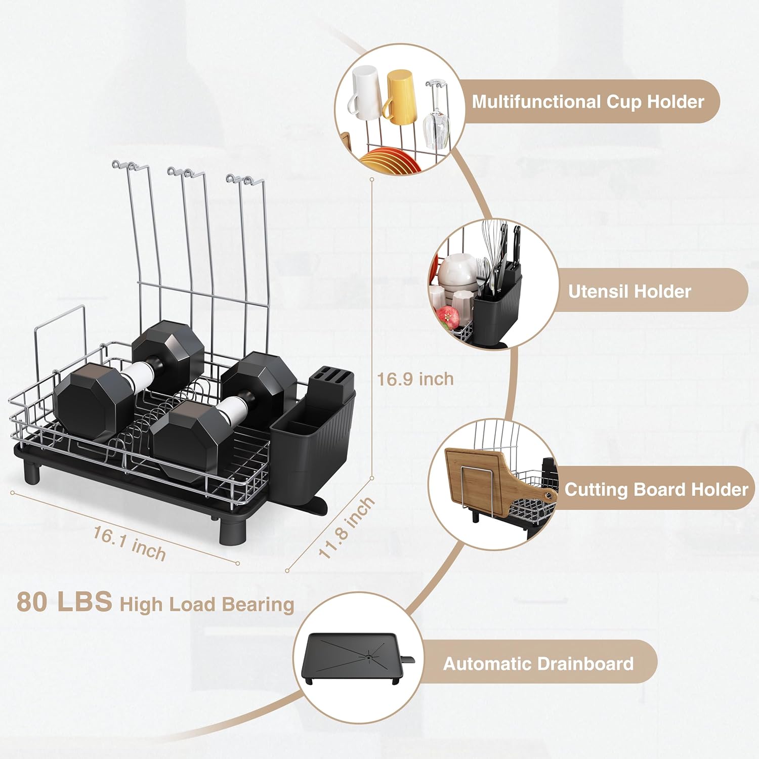 - 🖤 Modern Gray Dish Drying Rack: Smudge-resistant gray dish drying rack blends seamlessly. Easy-wipe finish stays clean—no stains, no scrubbing