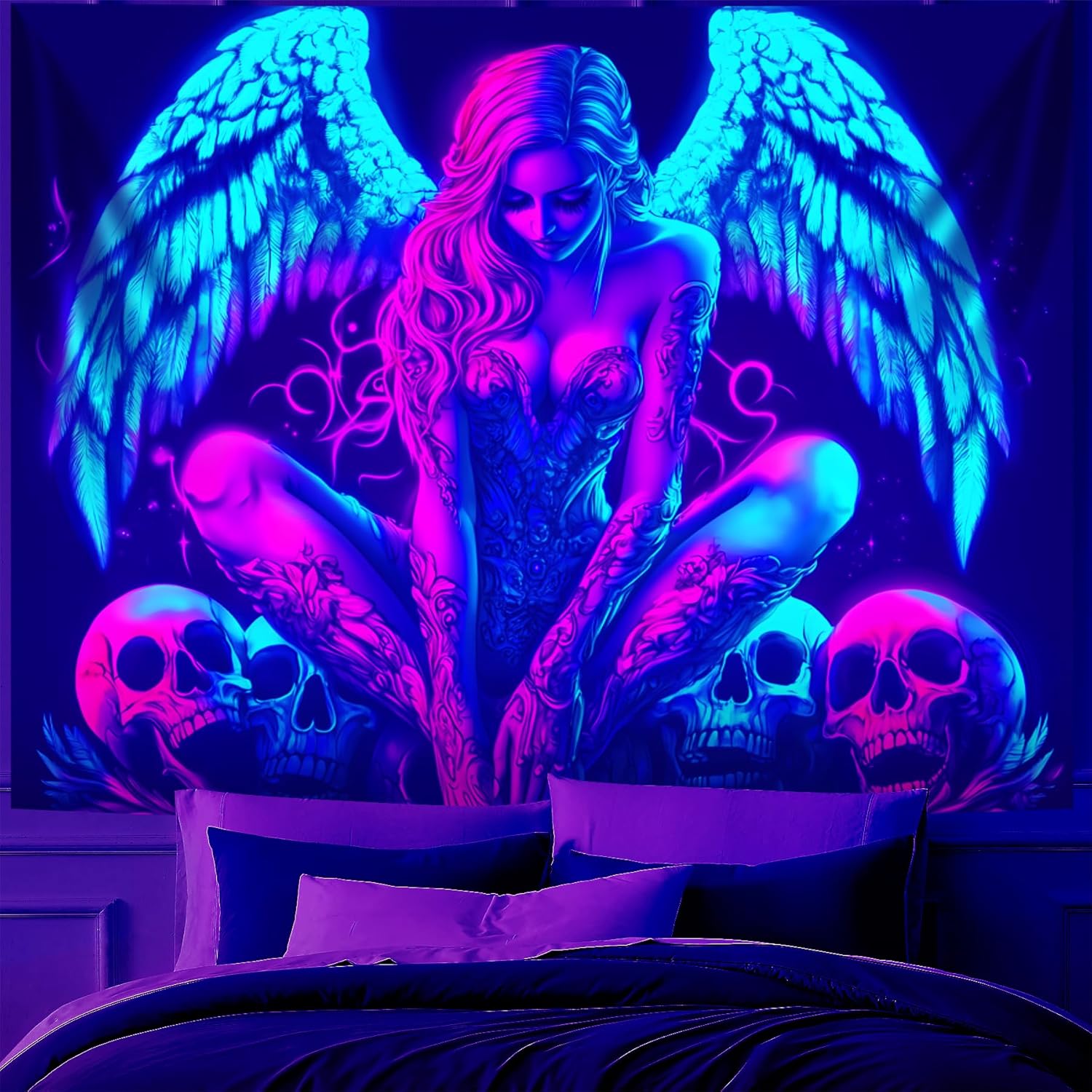 Blacklight Tapestry,WingTapestry Glow In The Dark,UV Reactive Black Light Upright Posters Wall Hanging for Bedroom Dorm Living Room Backdrop Decor (wing15, 59L" x 51W")