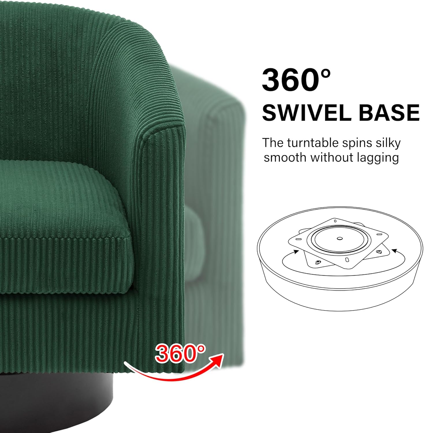 Swivel Barrel Accent Chair, Modern Round Corduroy Fabric Arm Chair for Living Room, Bedroom, Comfy Club Reading Chairs for Adults (Corduroy Dark Green, Set of 4)
