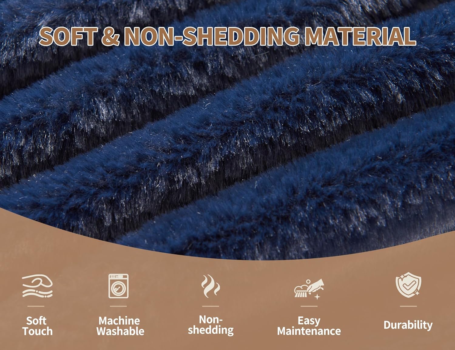 Boho Ottoman Living Room Furniture 26"x18" Round Ottomans Pouf Couch Foot Rest Navy Pouf Ottoman Foot Rest with Foam Chunk Filling Pouffe Ottomans Stuffed Foot Rests Poufs for Couch