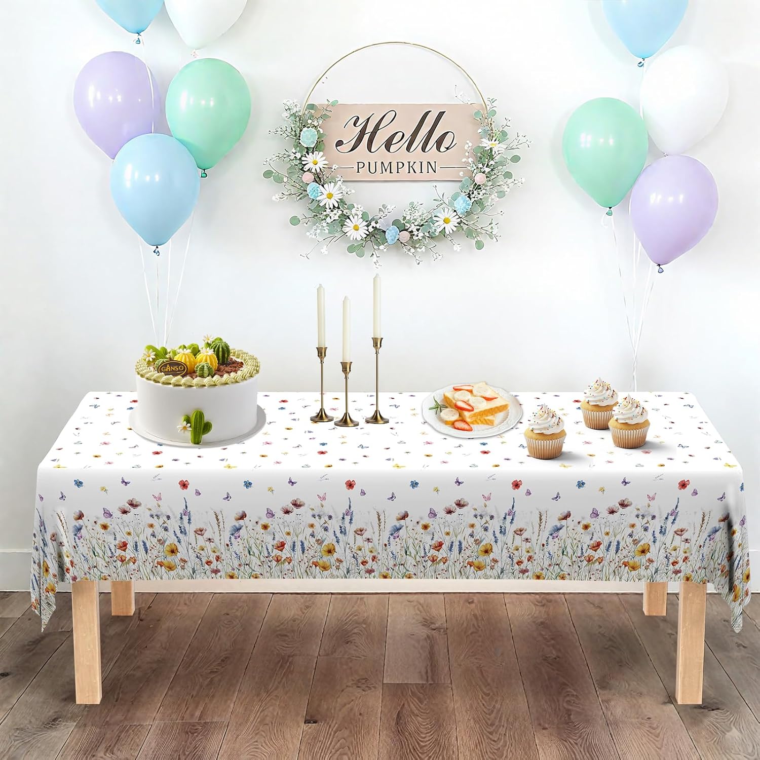 - 4-Pack Spring Floral Tablecloth Set: Each package includes 4 durable wildflower tablecloths - perfect for covering banquet tables or creating coordinated spring party zones!