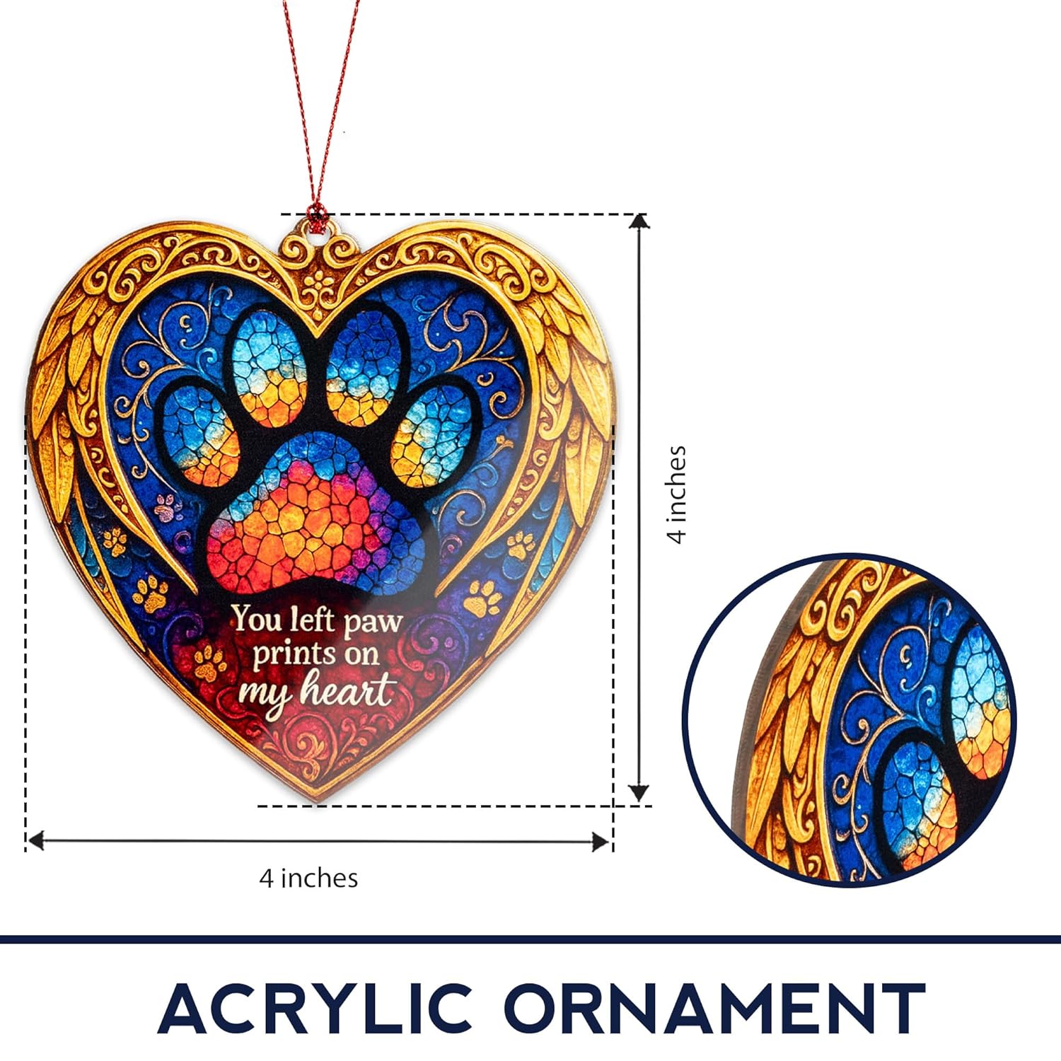 Pet Memorial Ornament – Paw Prints on My Heart | Dog Cat Loss Gift – Rainbow Bridge Keepsake – Sympathy Bereavement Christmas Tree Decoration – Car Hanging