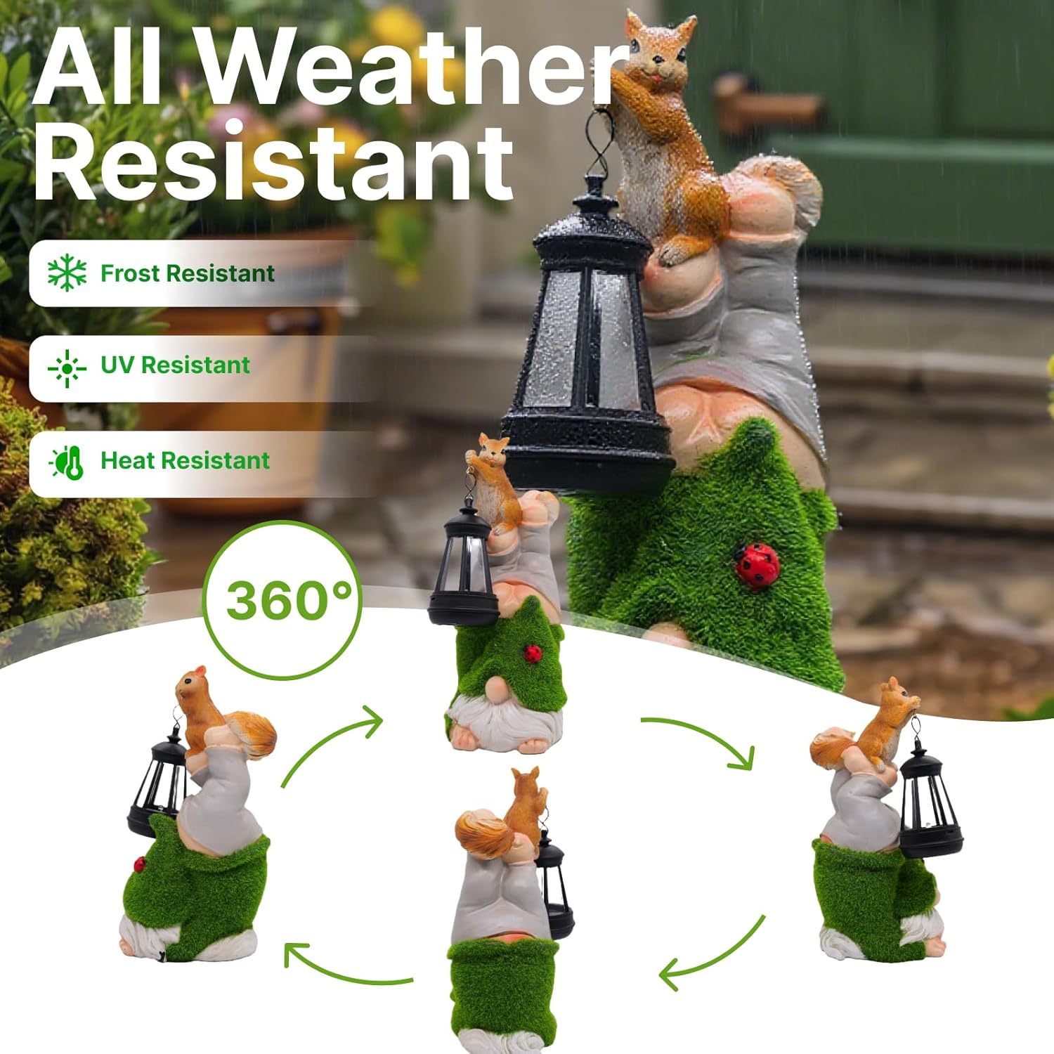 Garden Gnome Statues Decor with Solar Lights, Outdoor Decorations for Yard Porch Lawn Balcony Patio, Housewarming Gifts