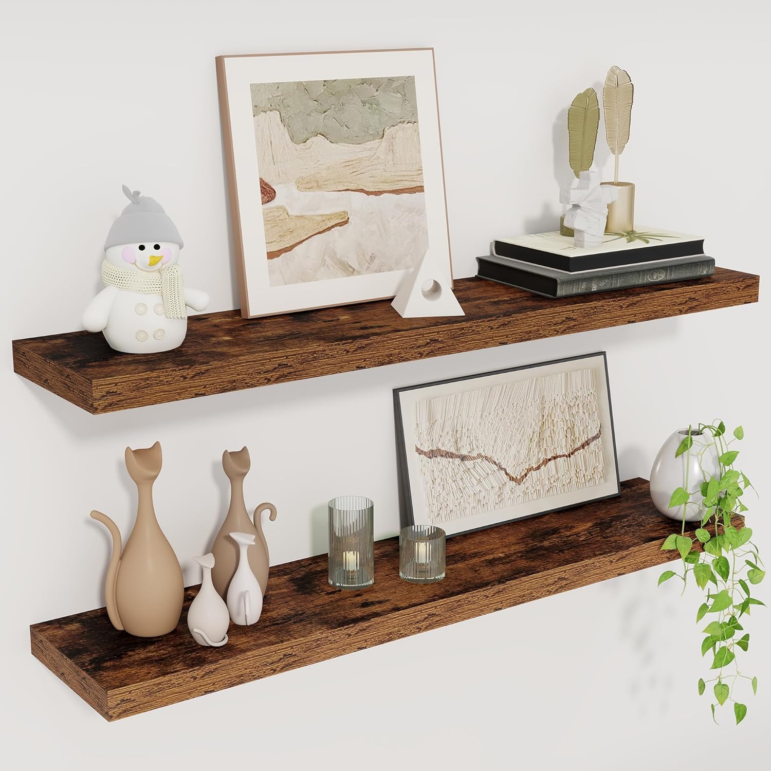 - EASY TO ASSEMBLE: Upgraded hidden mounting bracket aligns ensure a sleek floating effect, making the shelves secure. Instructions, a magnetic level, drywall anchors, and screws are included, making it easy to mount these rustic shelves gap-free in under 8 minutes