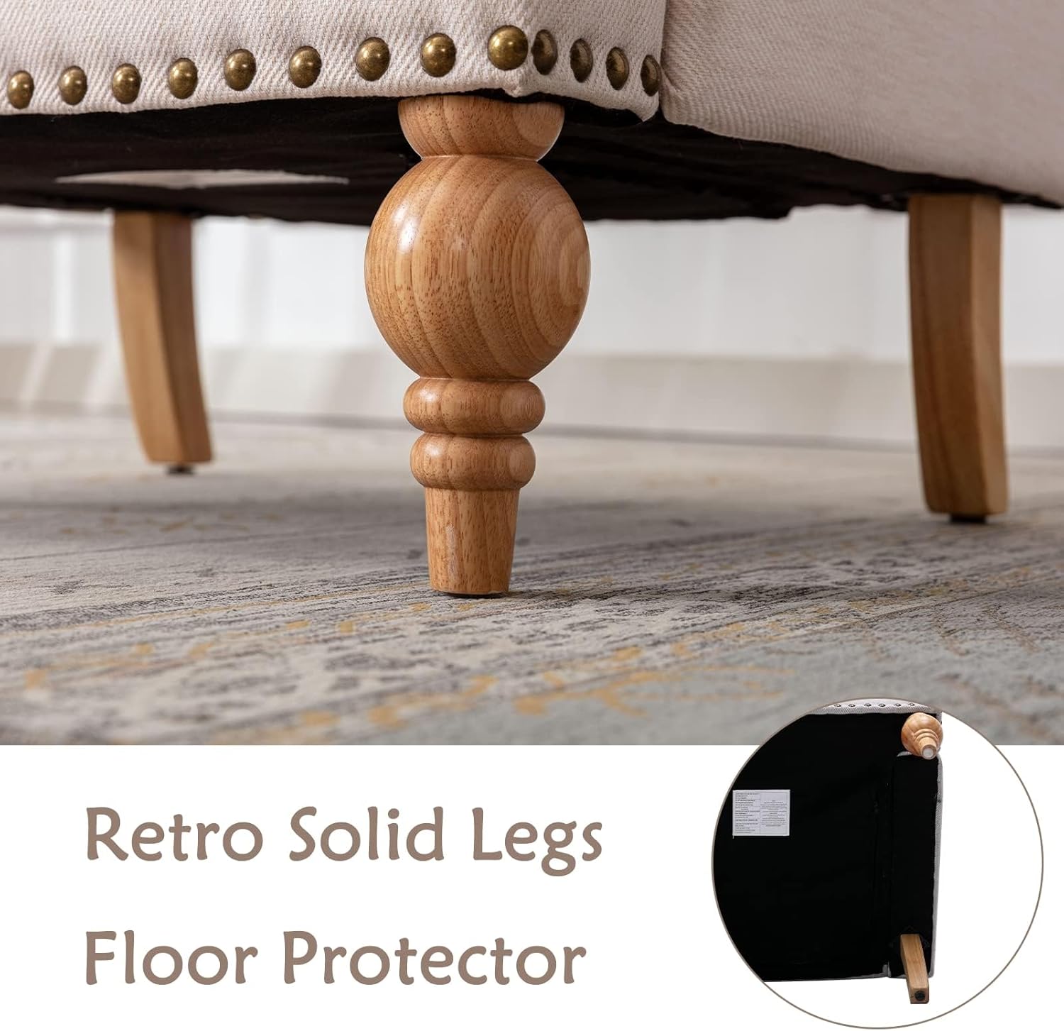 - CURVED ARMREST - The armrests are designed as round shap, which will be much comfier to relax your arms and shoulders on them. The bronze nailheads trim makes it more unique, it will be a siutable single sofa in your room