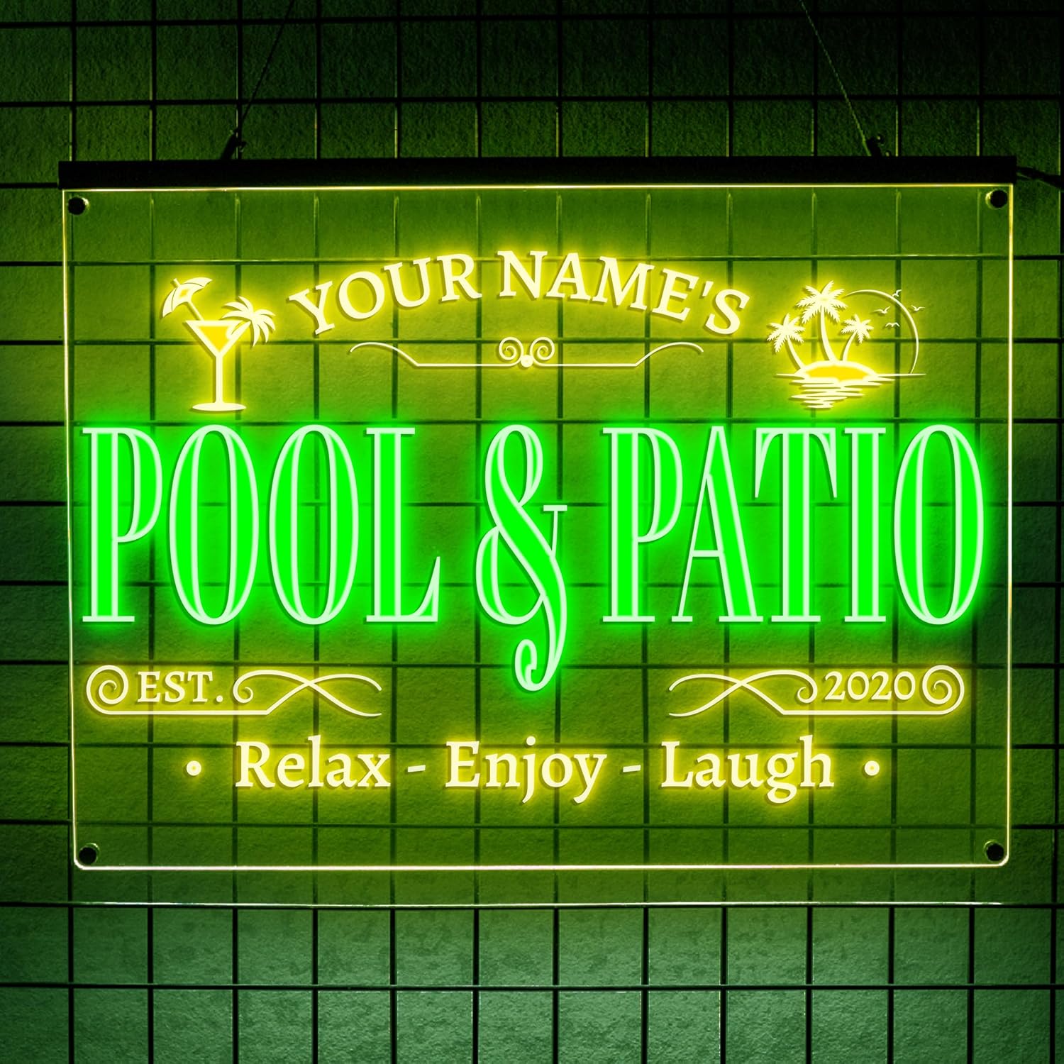 Personalized Pool & Patio Neon Sign, Custom LED Wall Light for Backyard Decor, Outdoor Bar Sign, Relaxing Vibes Gift for Homeowners