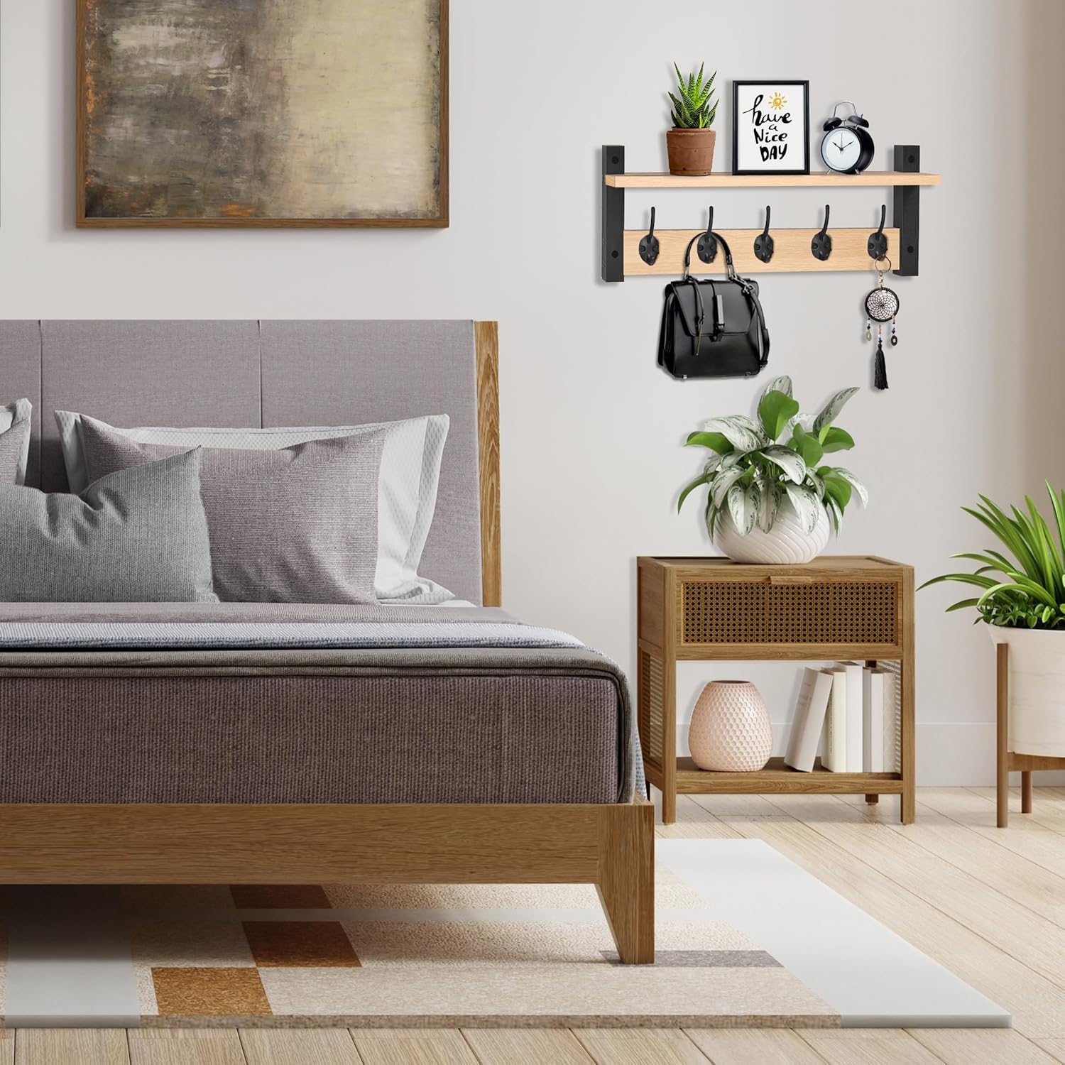 Sorbus Coat Hooks Wall Mount with Shelf – 24 Inch Coat Rack Wall Mount with 5 Heavy Duty Hooks – Floating Wall Shelf with Hooks for Entryway, Bathroom, Bedroom, Kitchen, or Mudroom (Maple Wood)